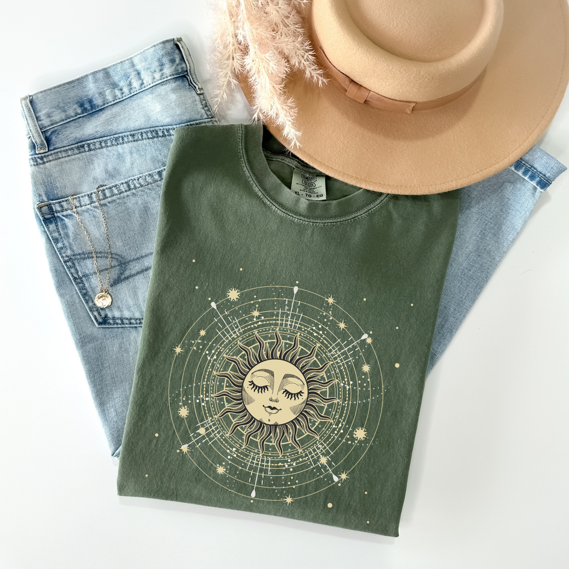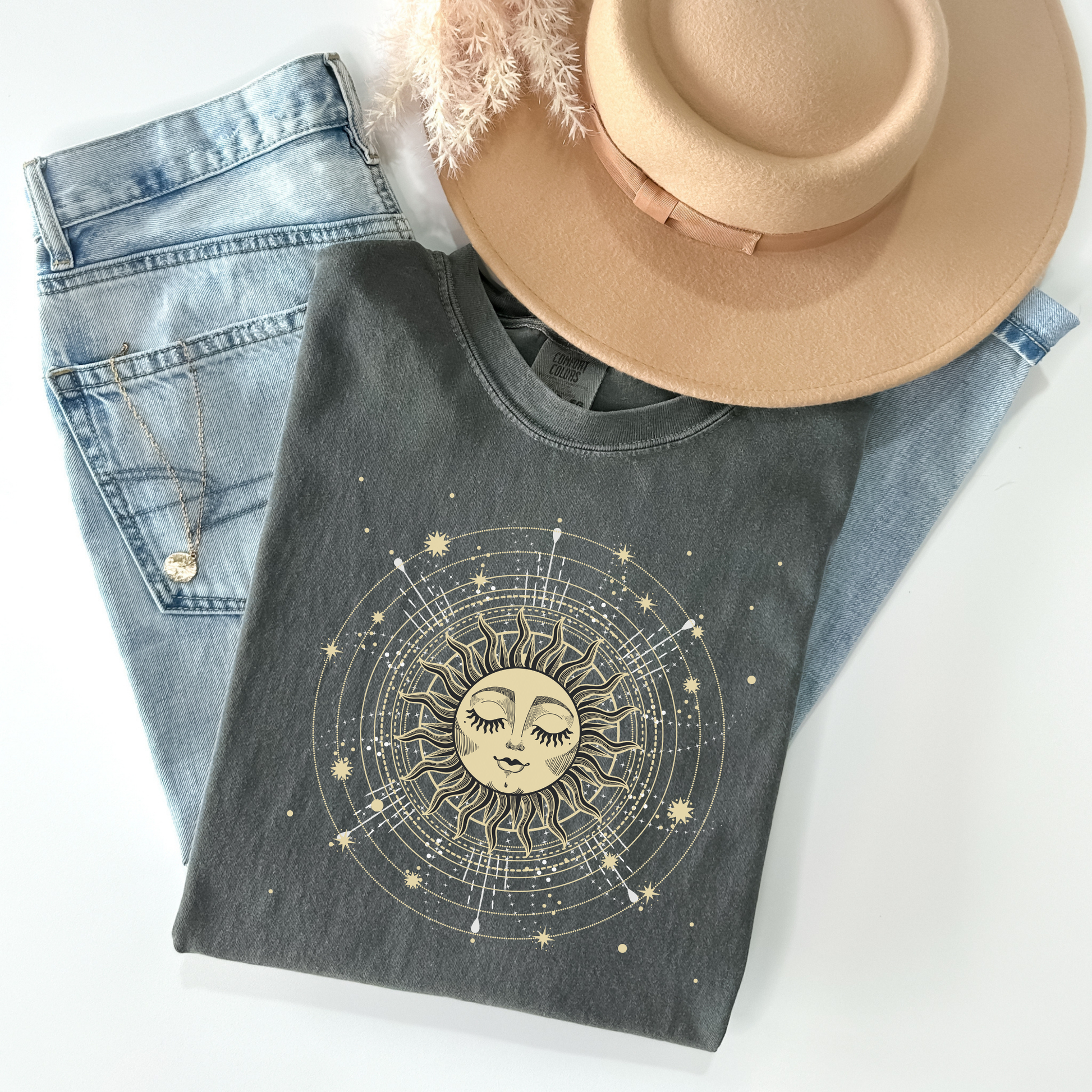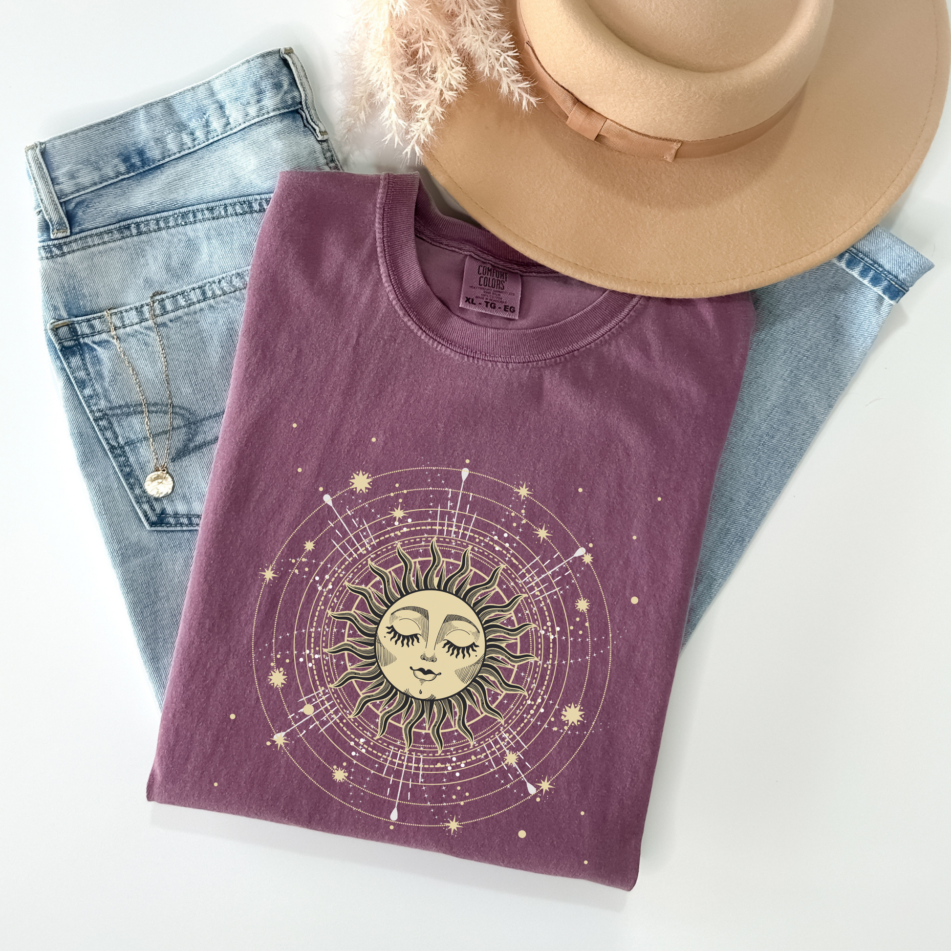๐โ๏ธ This mystical sun graphic tee featuring a face moon design is the perfect gift for her.ย
