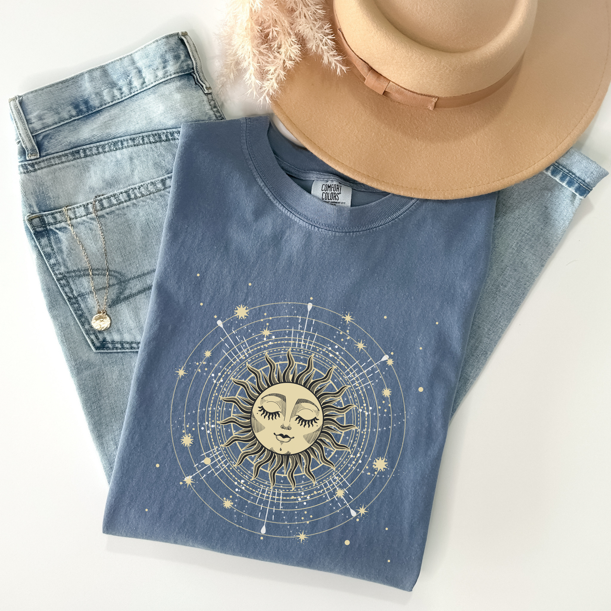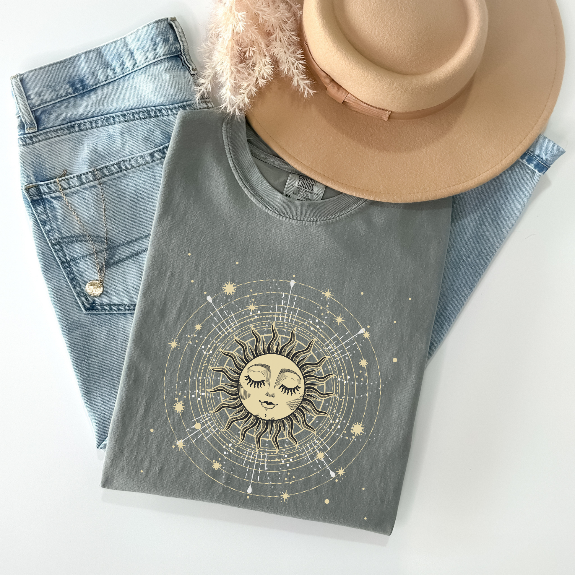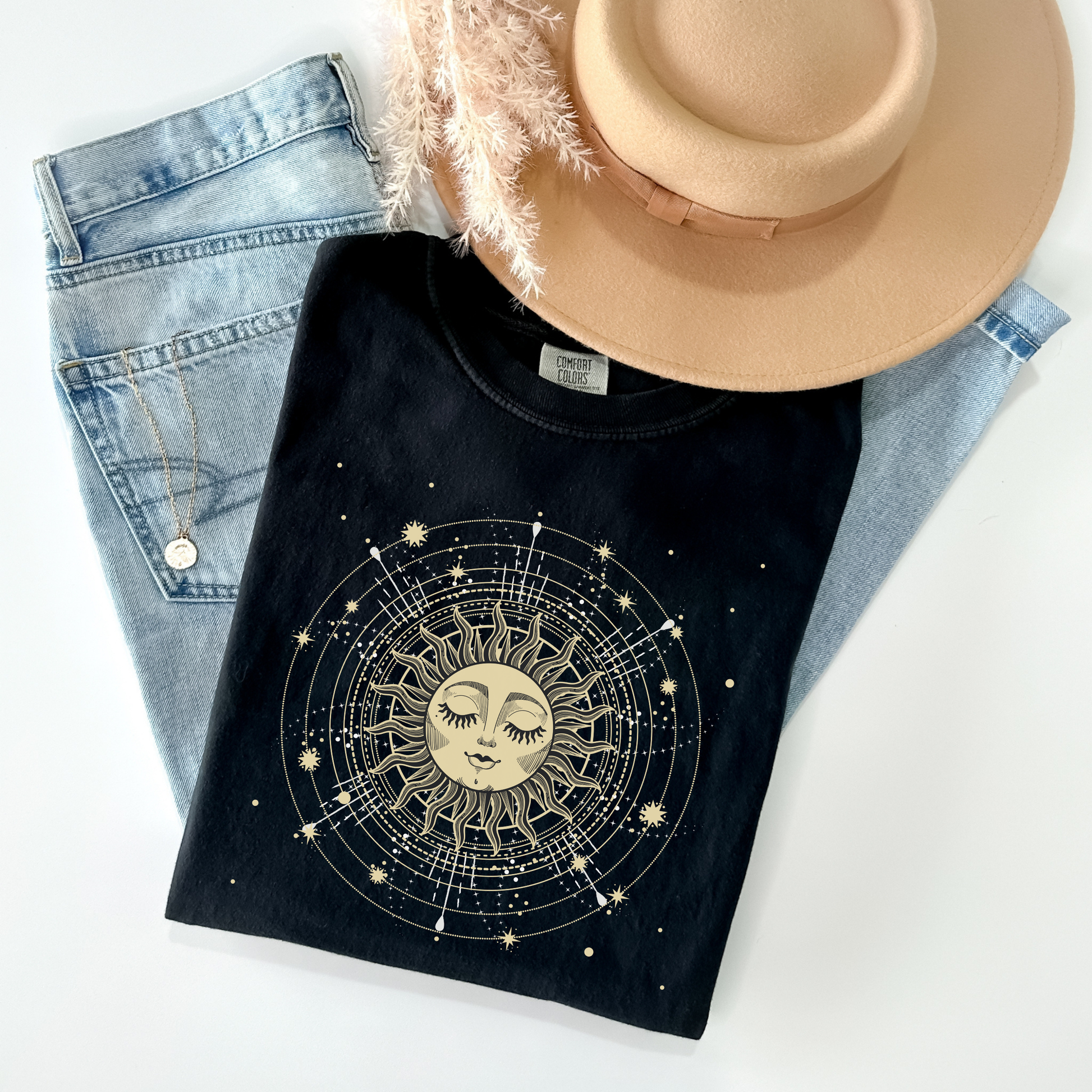 ๐โ๏ธ This mystical sun graphic tee featuring a face moon design is the perfect gift for her.ย