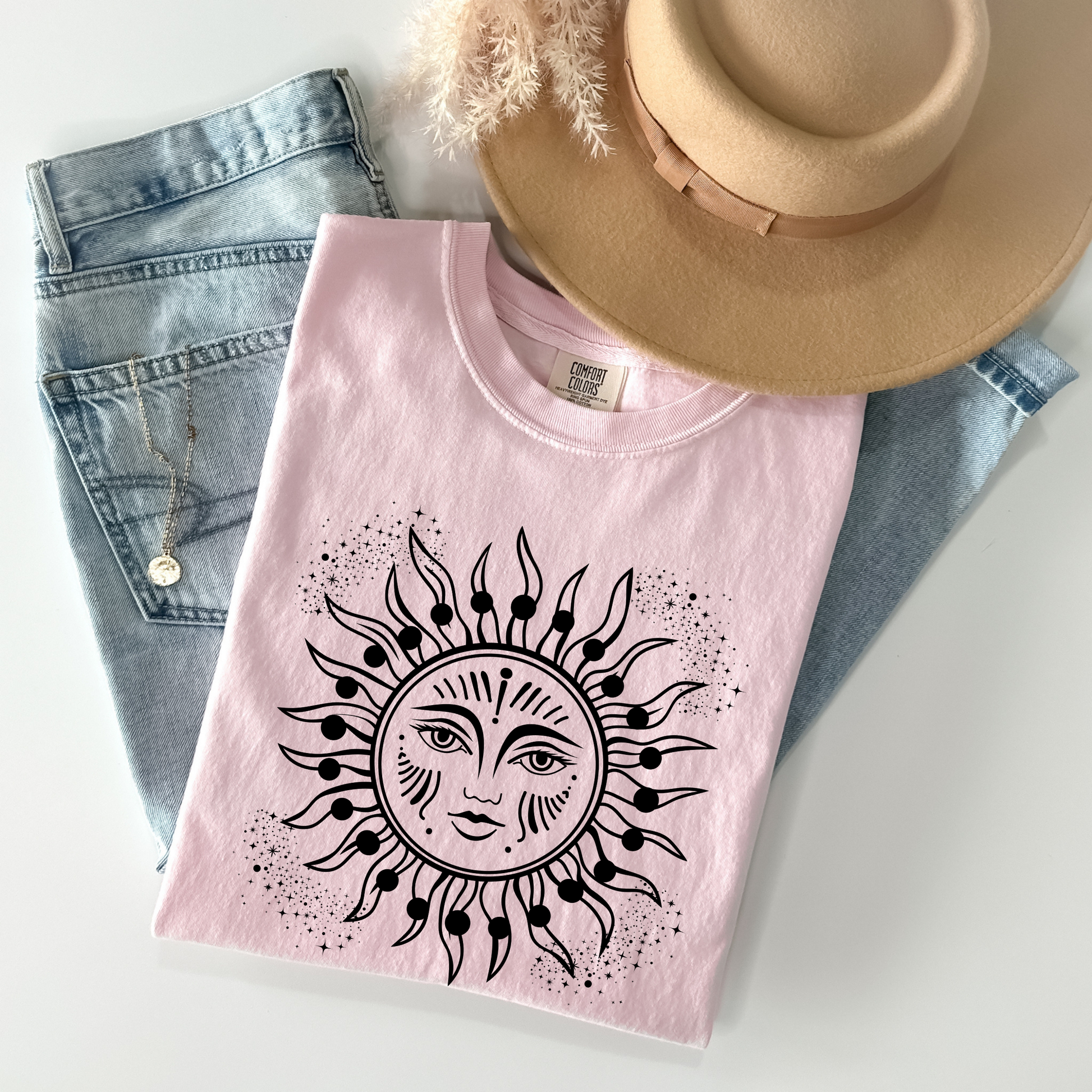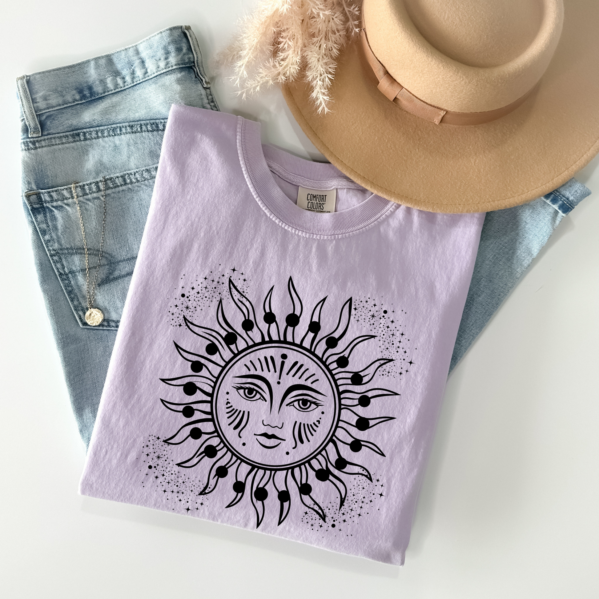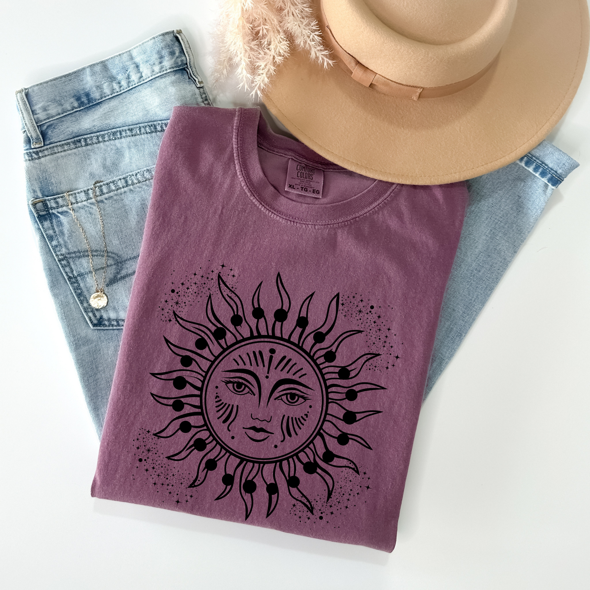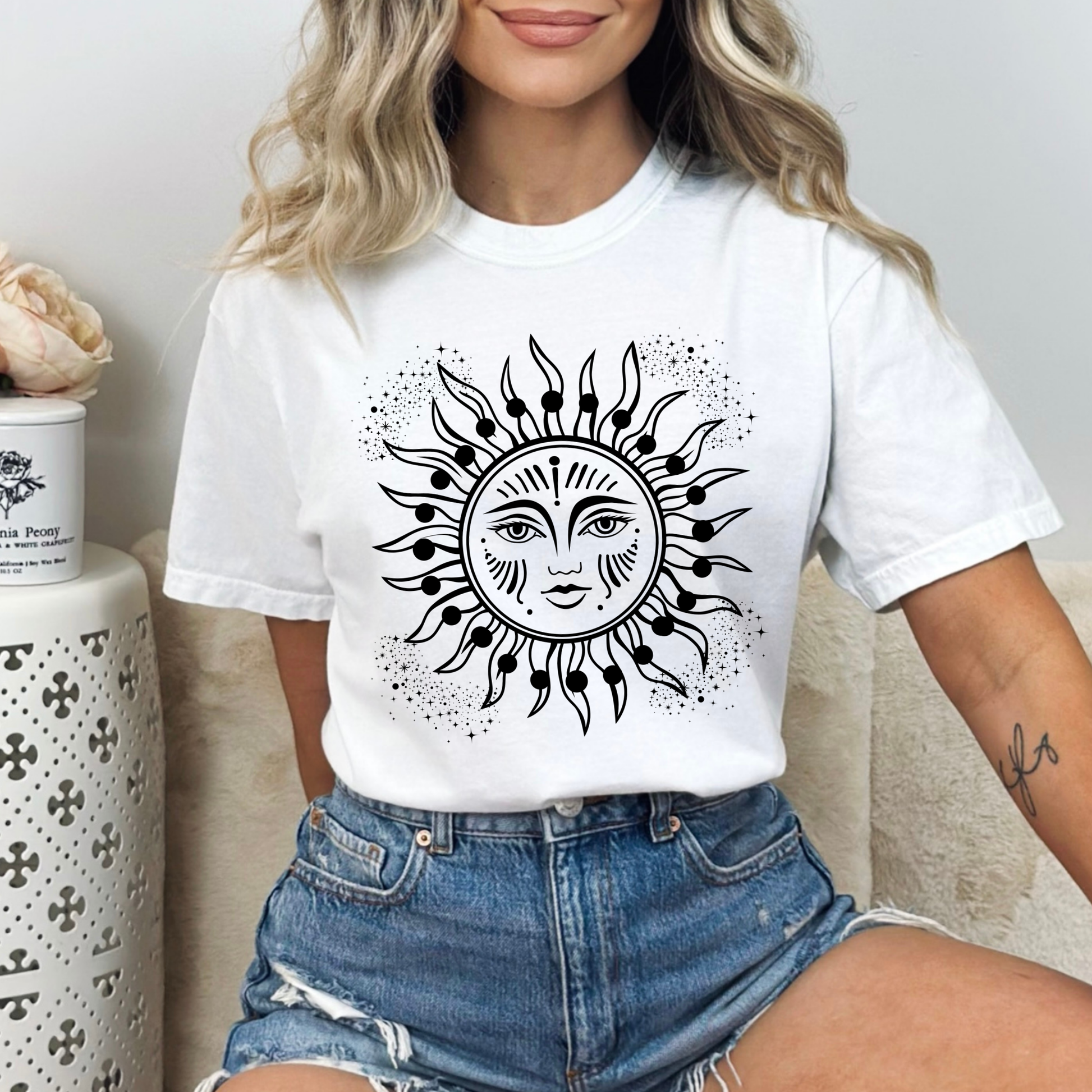 ππ Celestial sun graphic tee featuring a sun with celestial stars design, perfect as a gift for her.