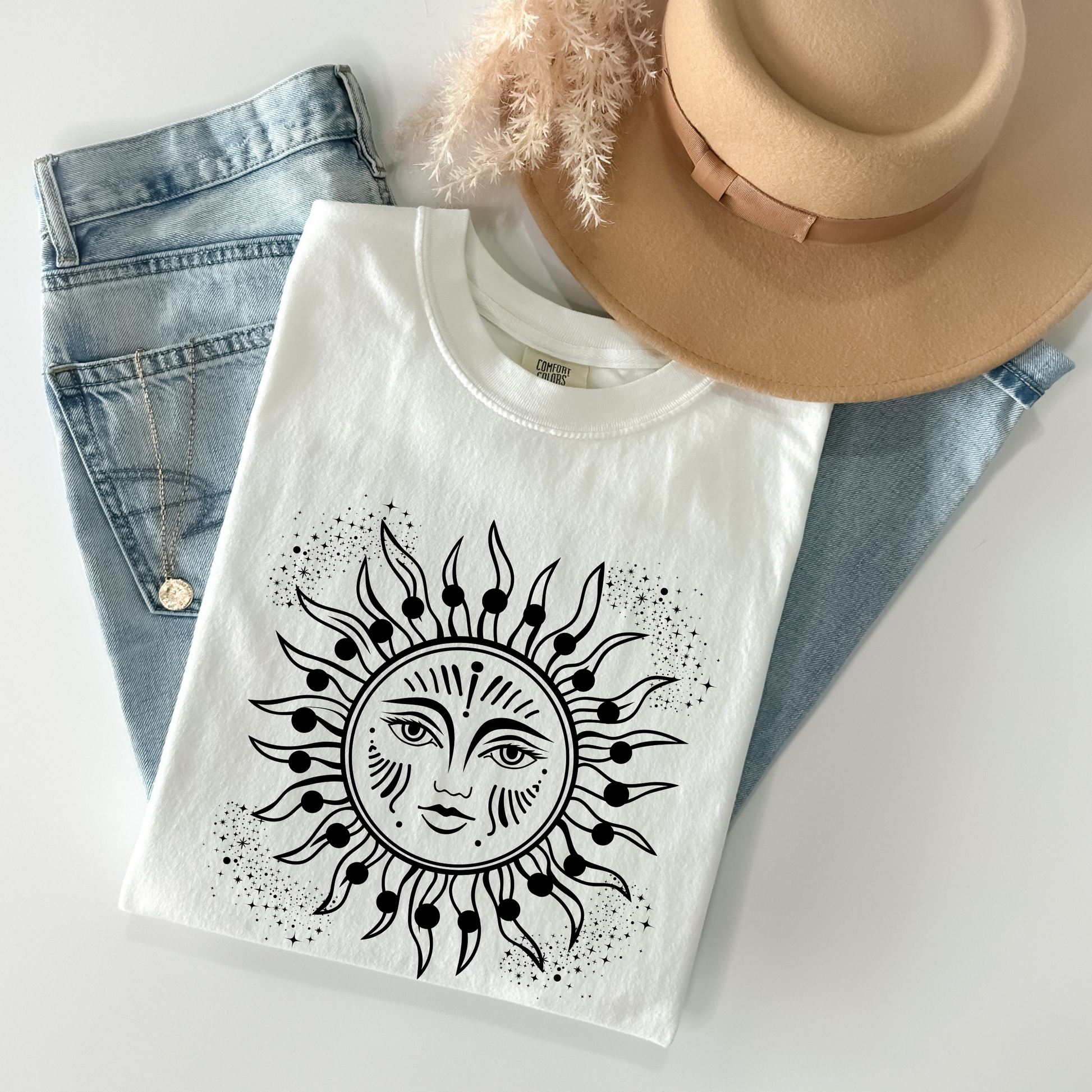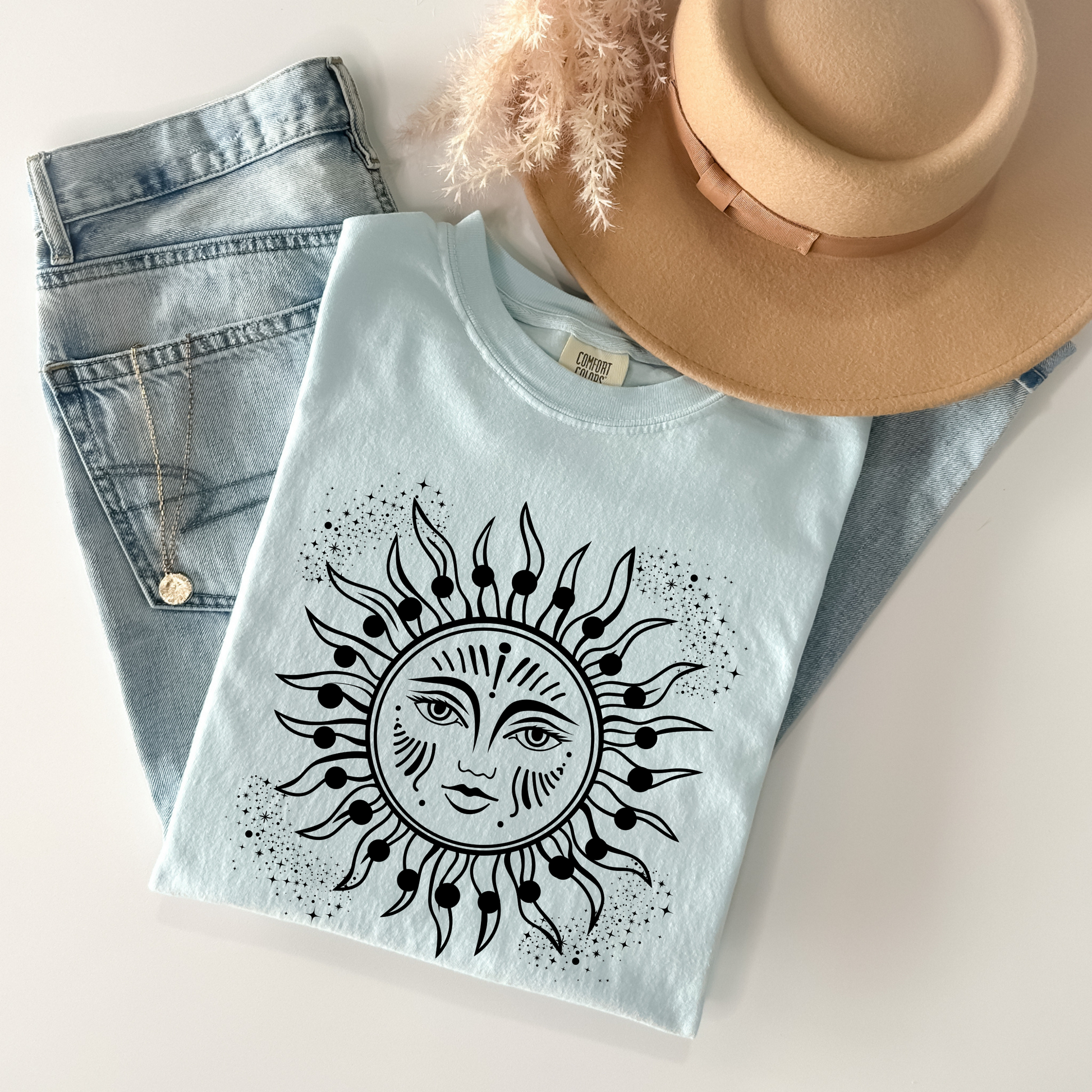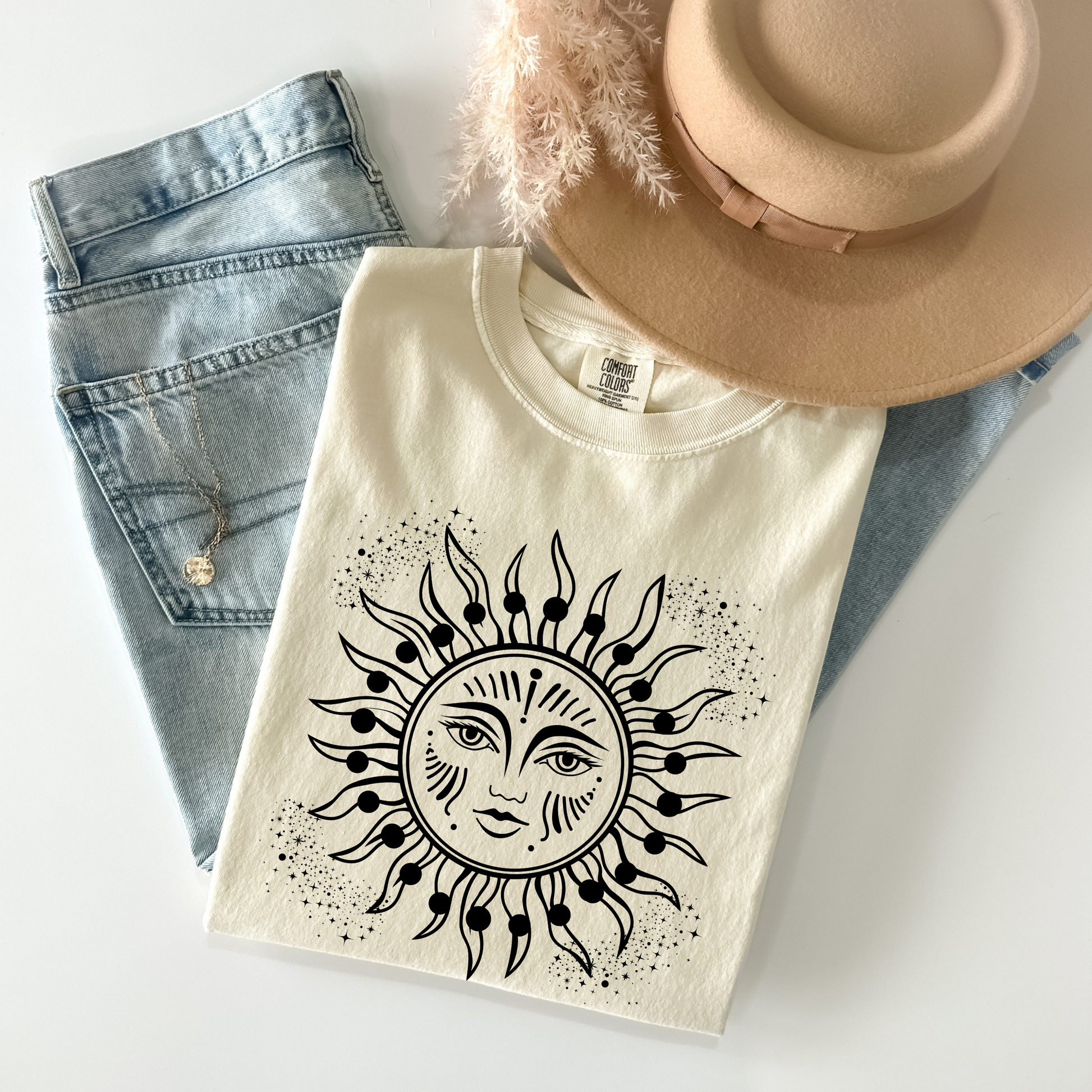 ππ Celestial sun graphic tee featuring a sun with celestial stars design, perfect as a gift for her.
