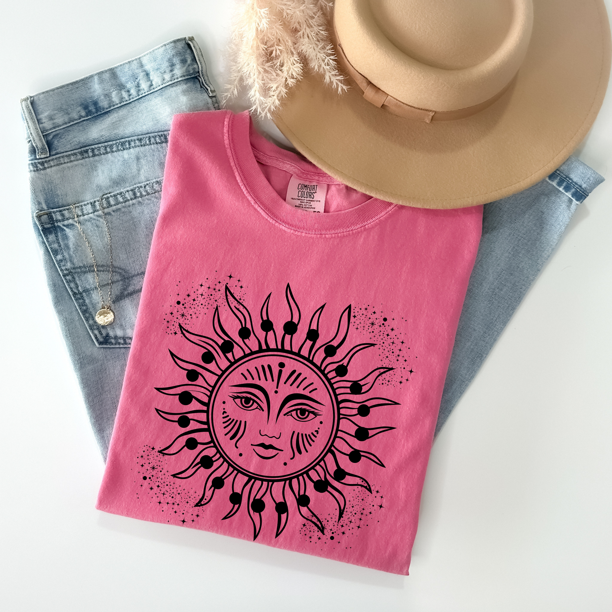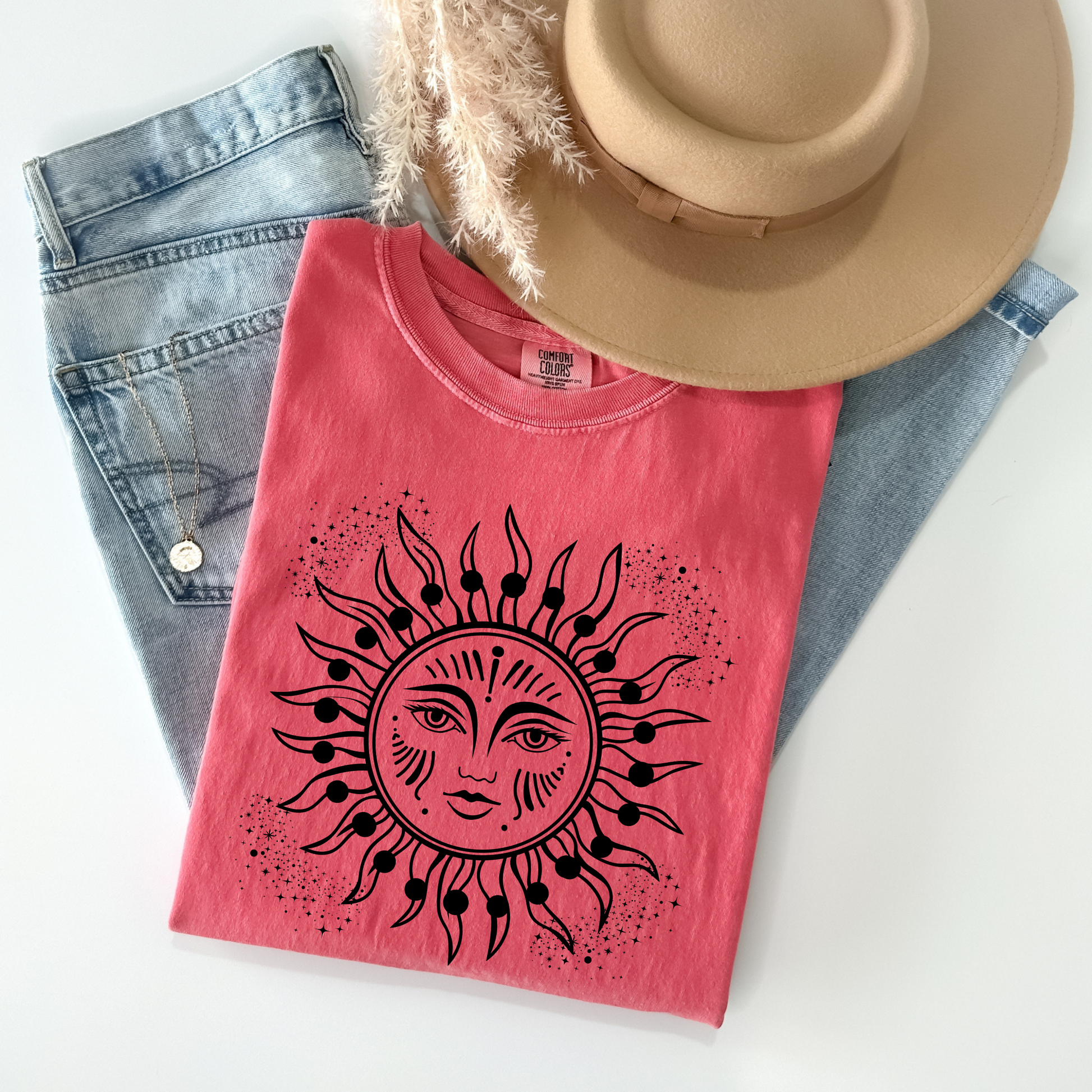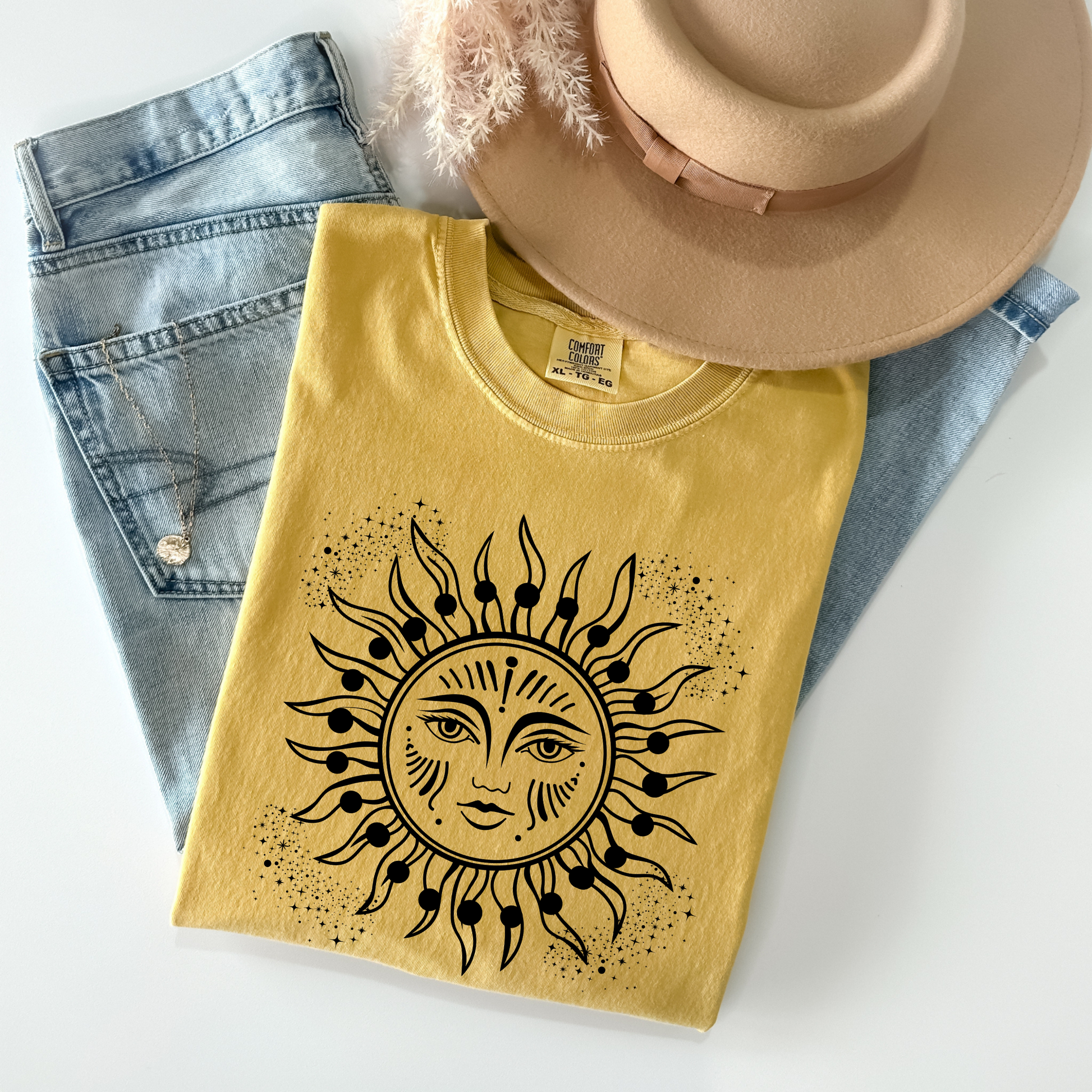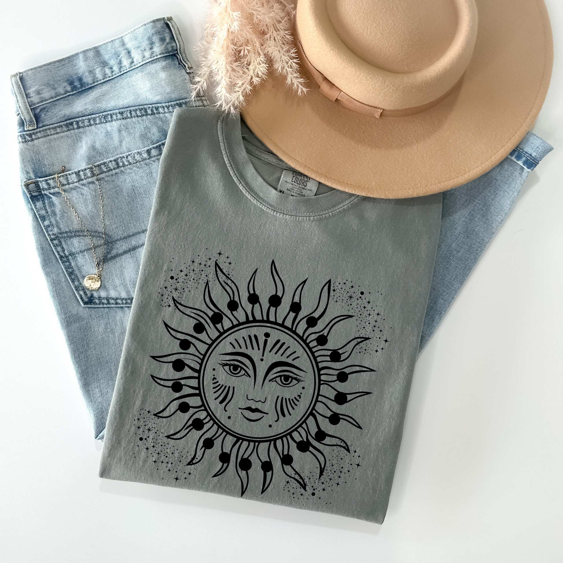 ππ Celestial sun graphic tee featuring a sun with celestial stars design, perfect as a gift for her.