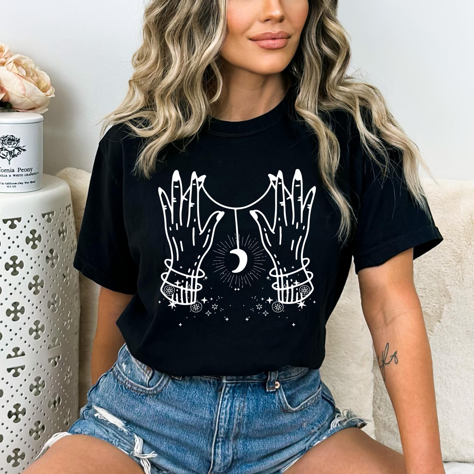 πβ¨ This captivating tee features a hand-drawn design that showcases a stunning full circle moon surrounded by mystical stars in an intricate doodle line art style.