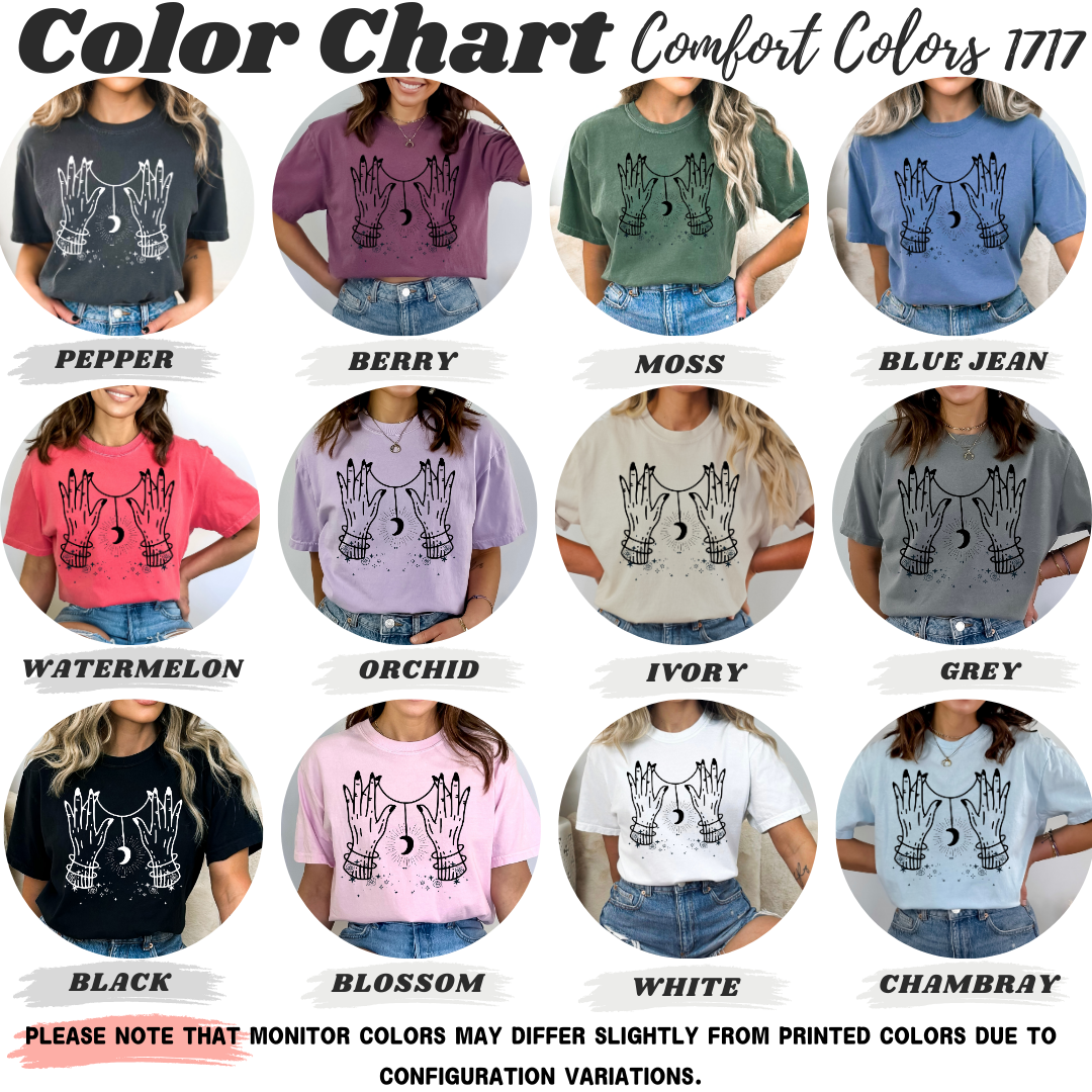 This garment is a standard unisex size Comfort Colors Tee.