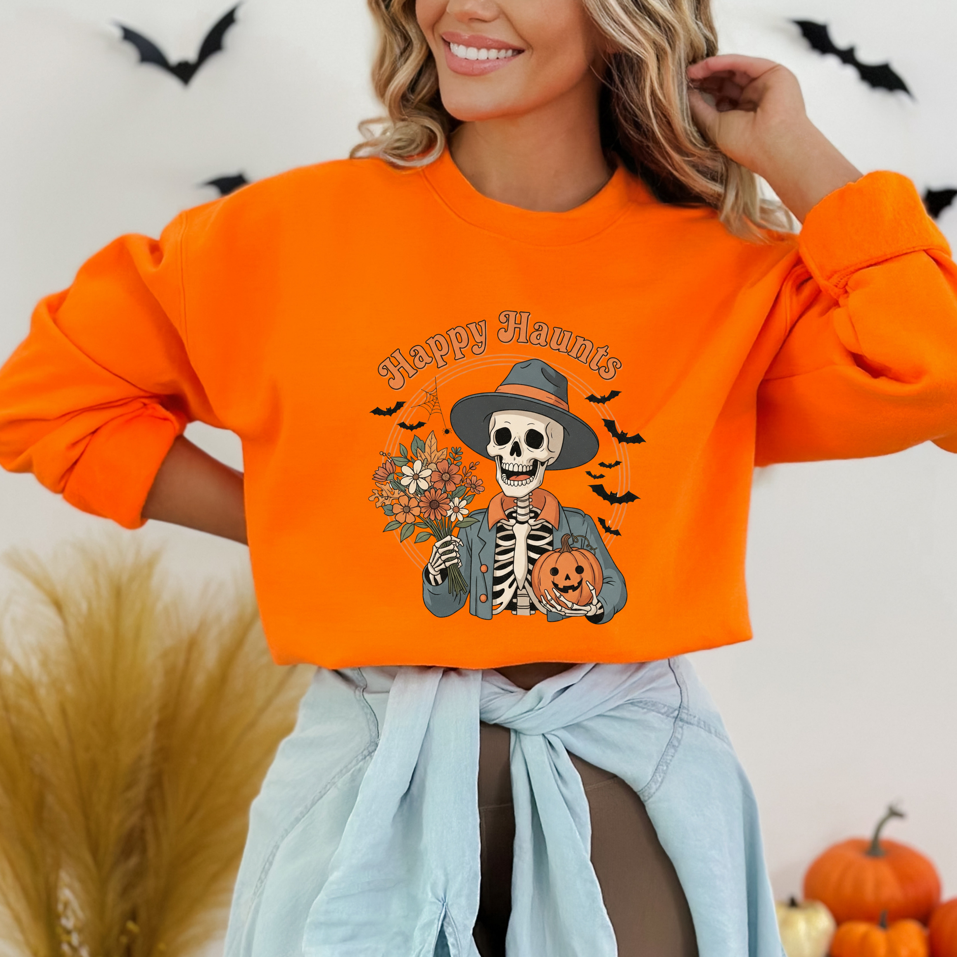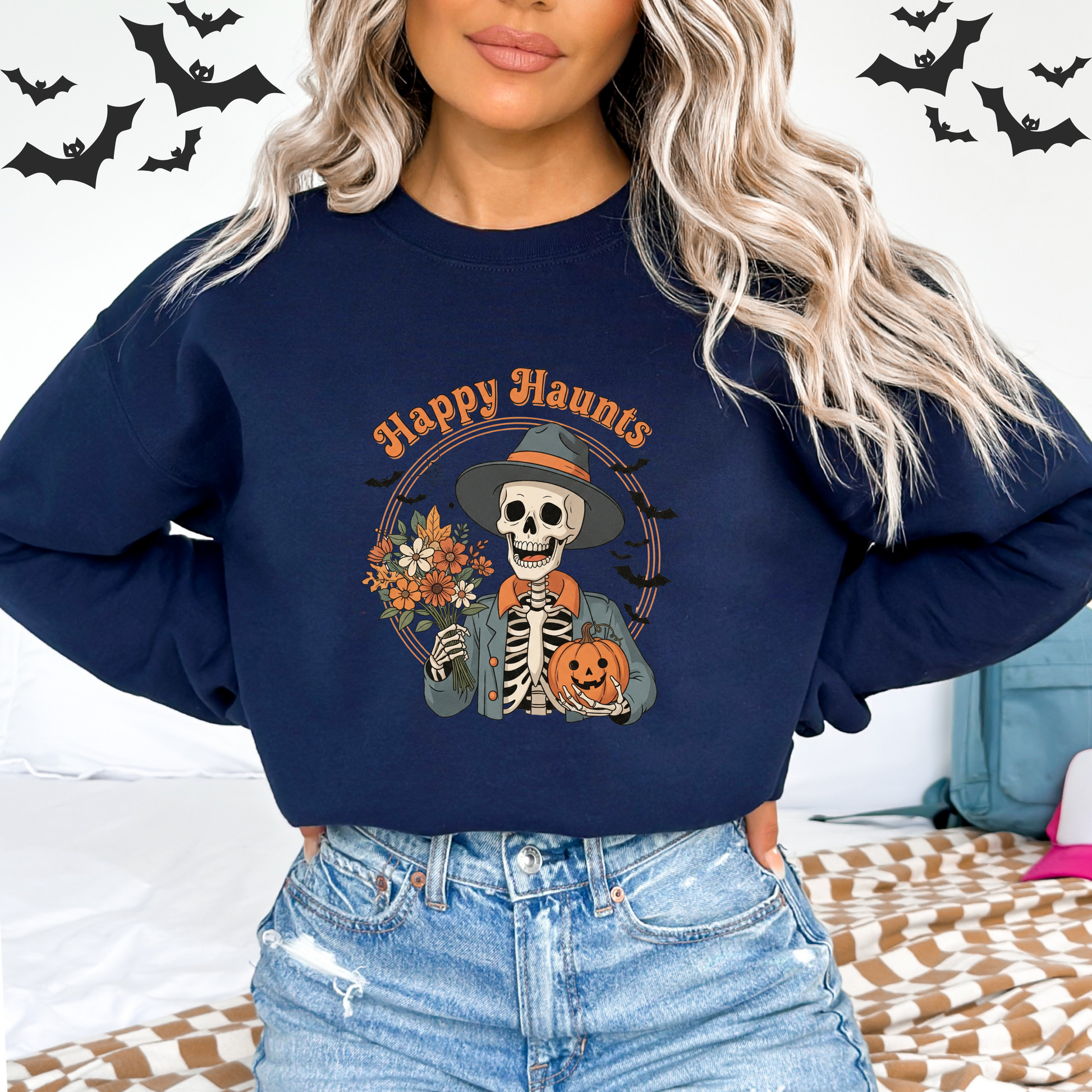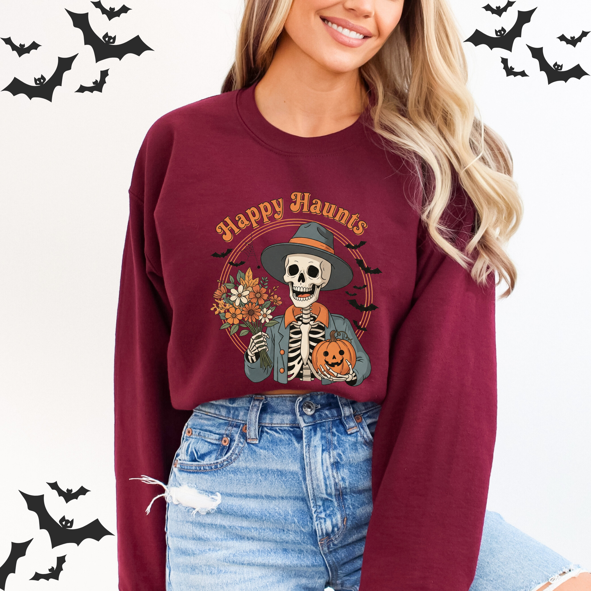 ๐๐ This whimsical, vintage-style design features a charming skeleton holding a bouquet of flowers and a pumpkin.
