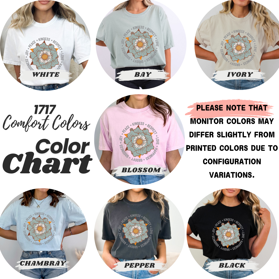 This garment is a standard unisex size Comfort Colors Tee.