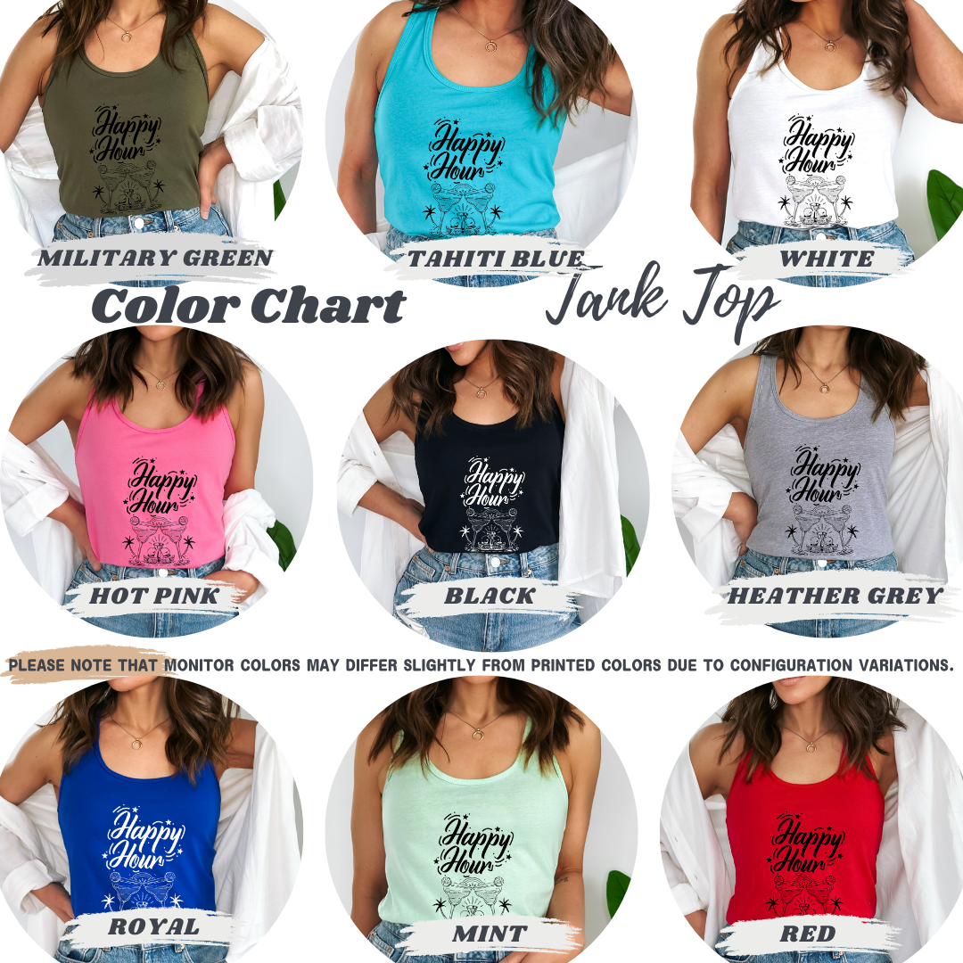 👕🍹 This Happy Hour Cocktail tank exudes a fun and vibrant vibe, perfect for summer parties or casual hangouts with friends.