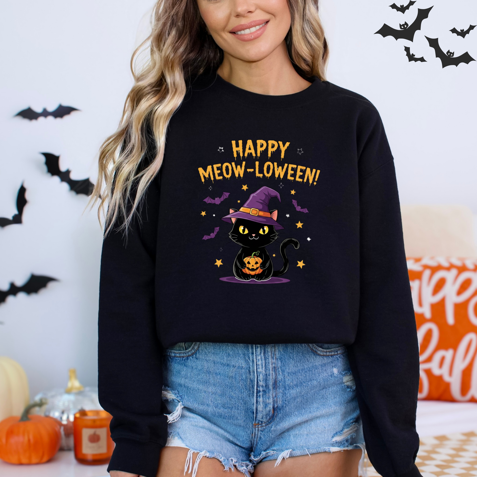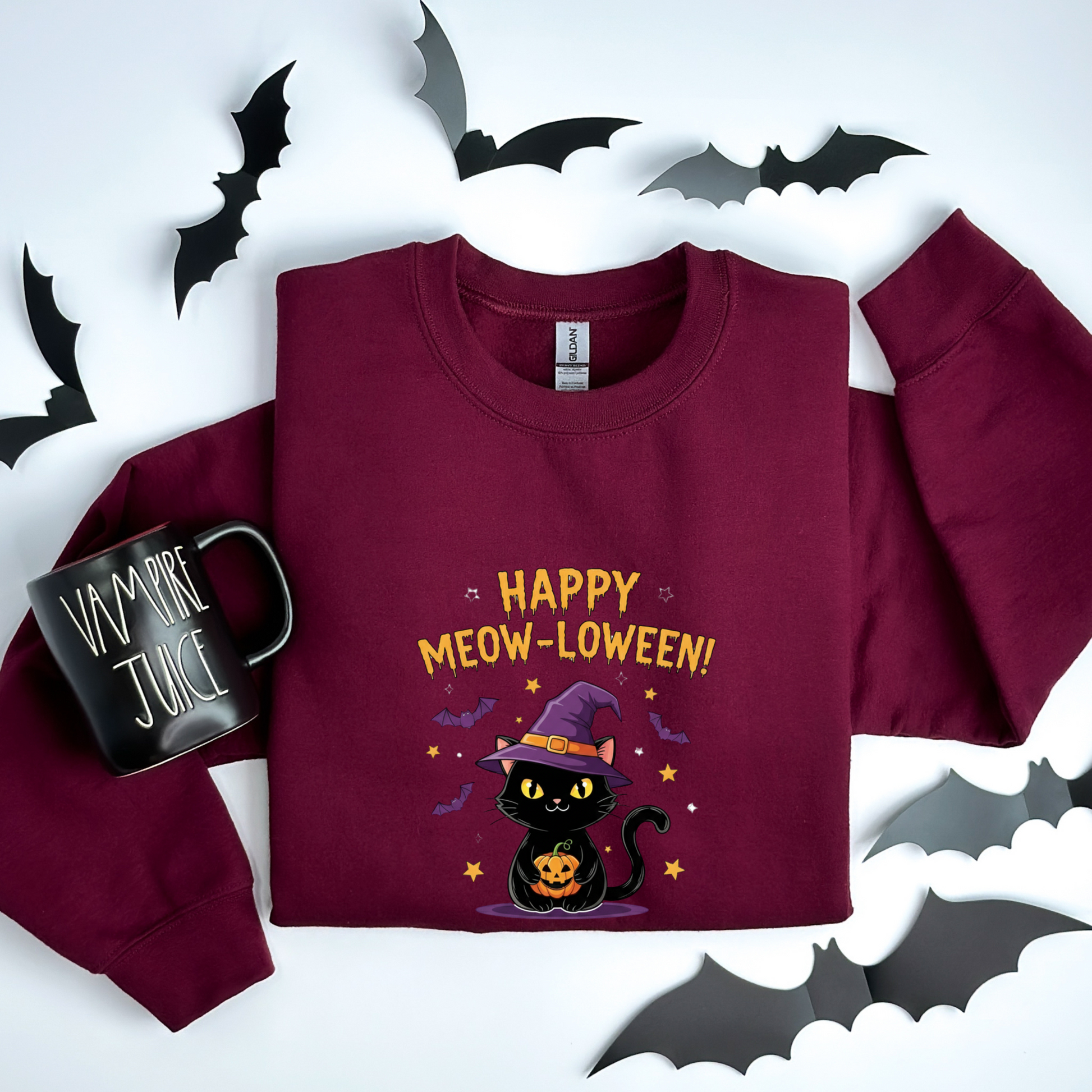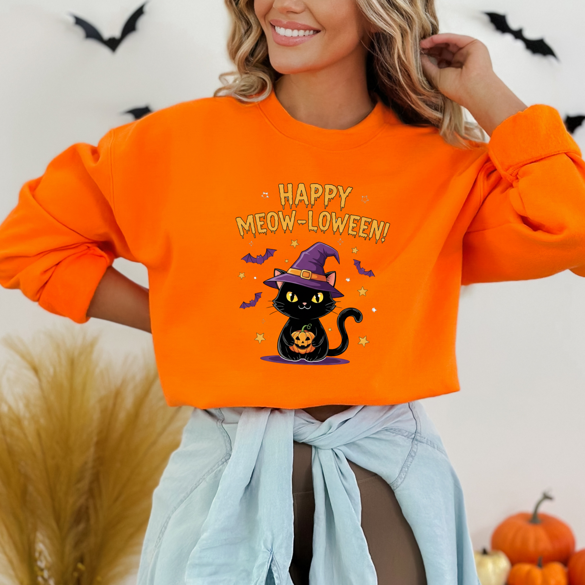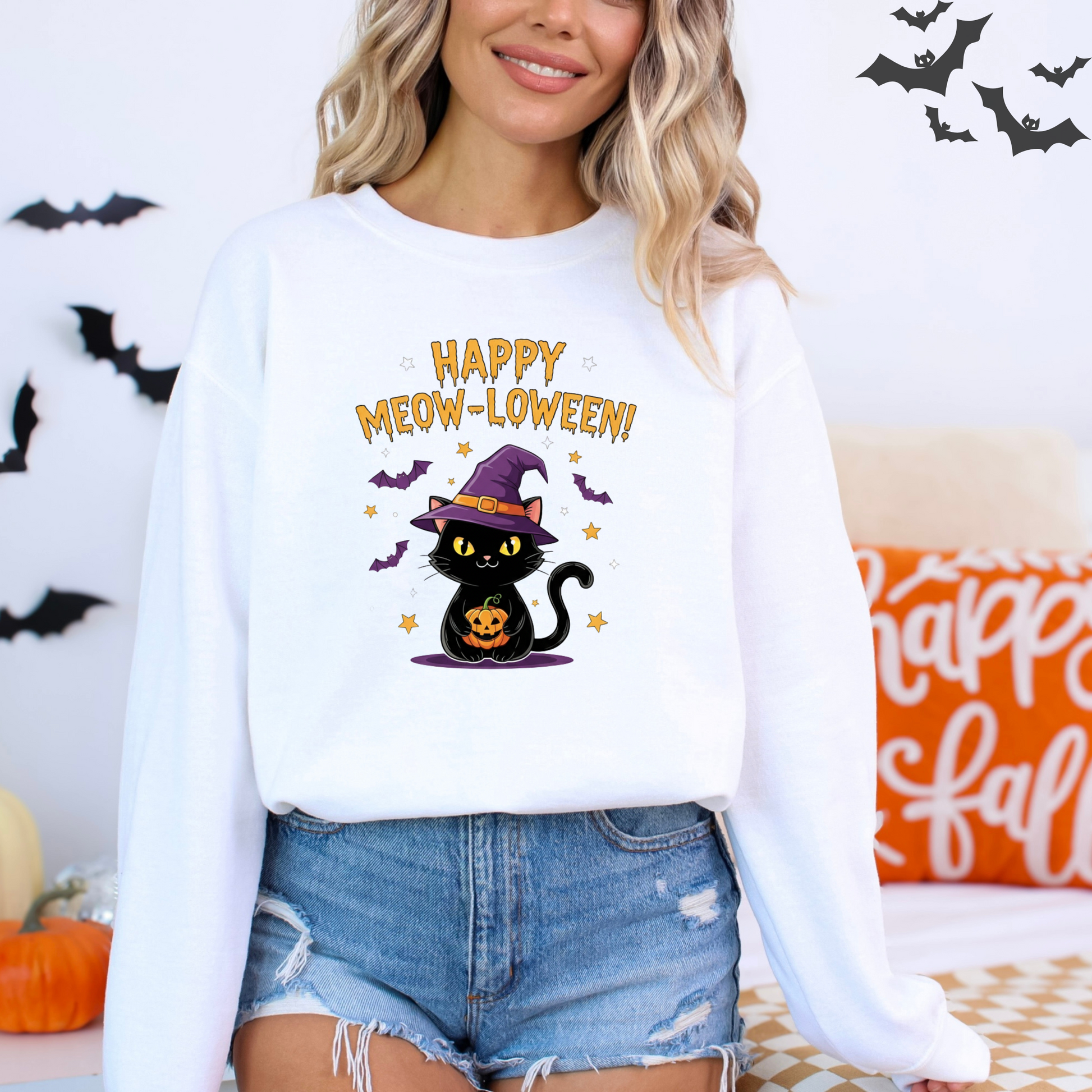 Happy Meow-loween Witchy Cat & Pumpkin Sweatshirt