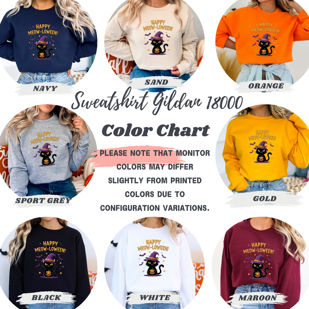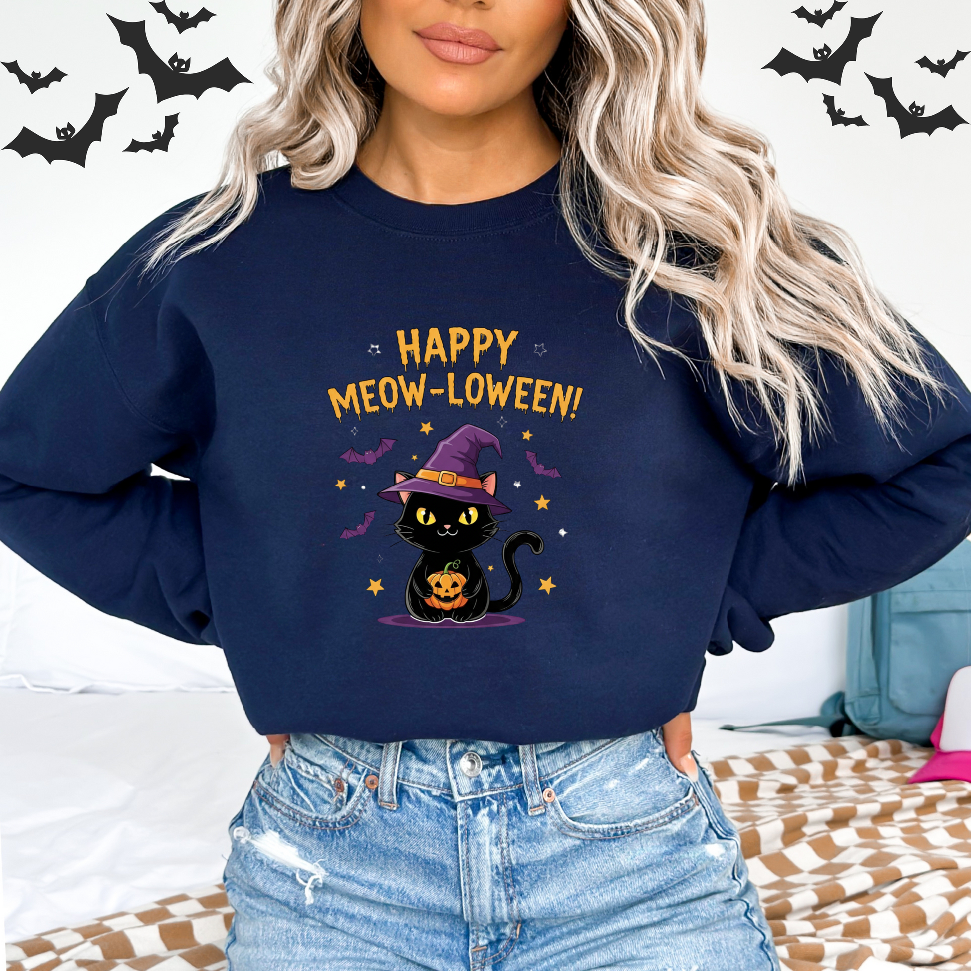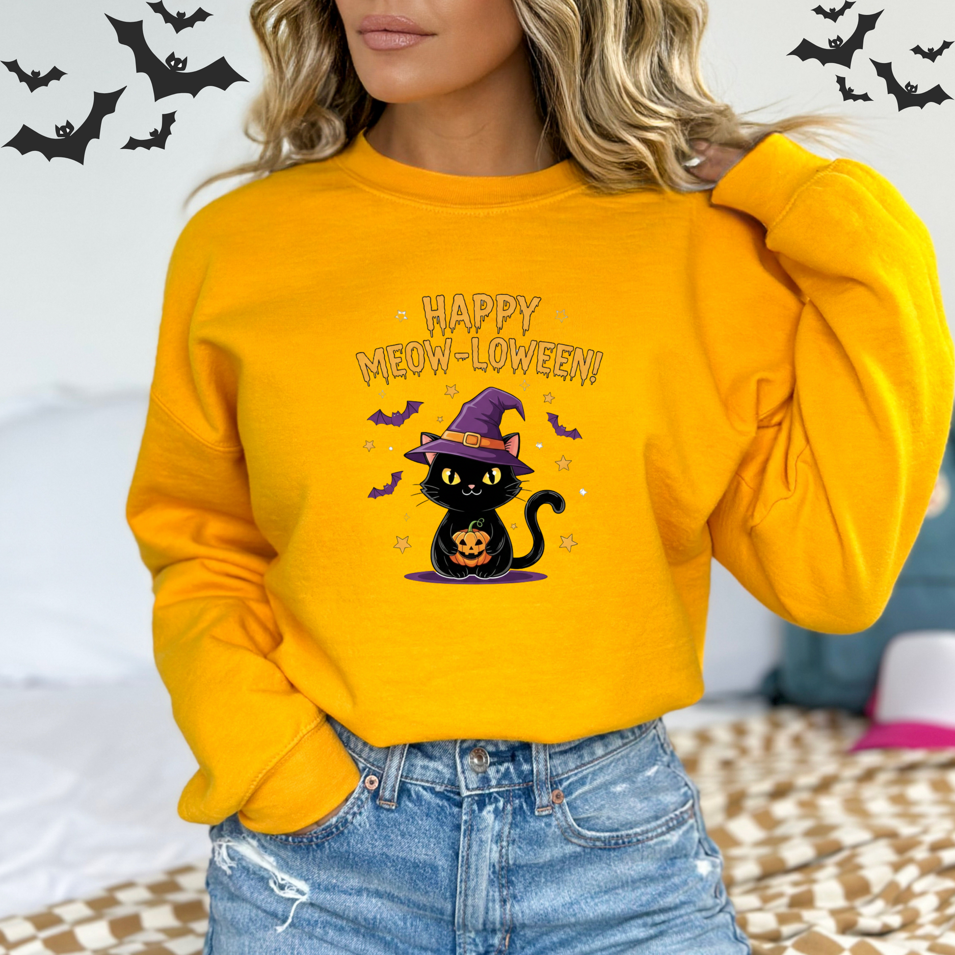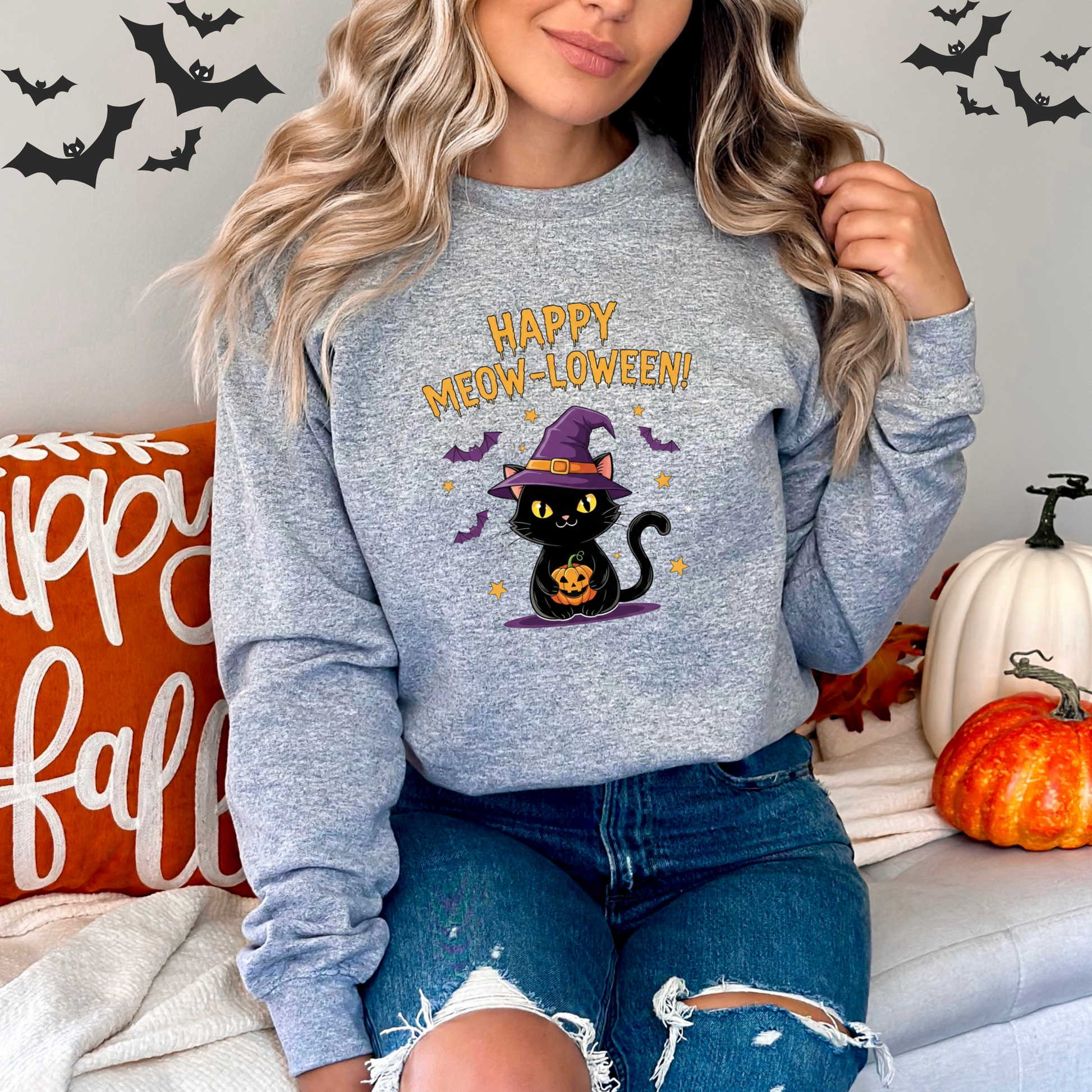 Happy Meow-loween Witchy Cat & Pumpkin Sweatshirt