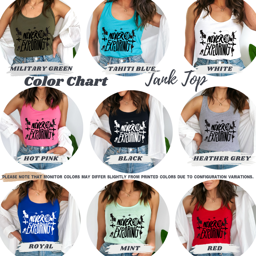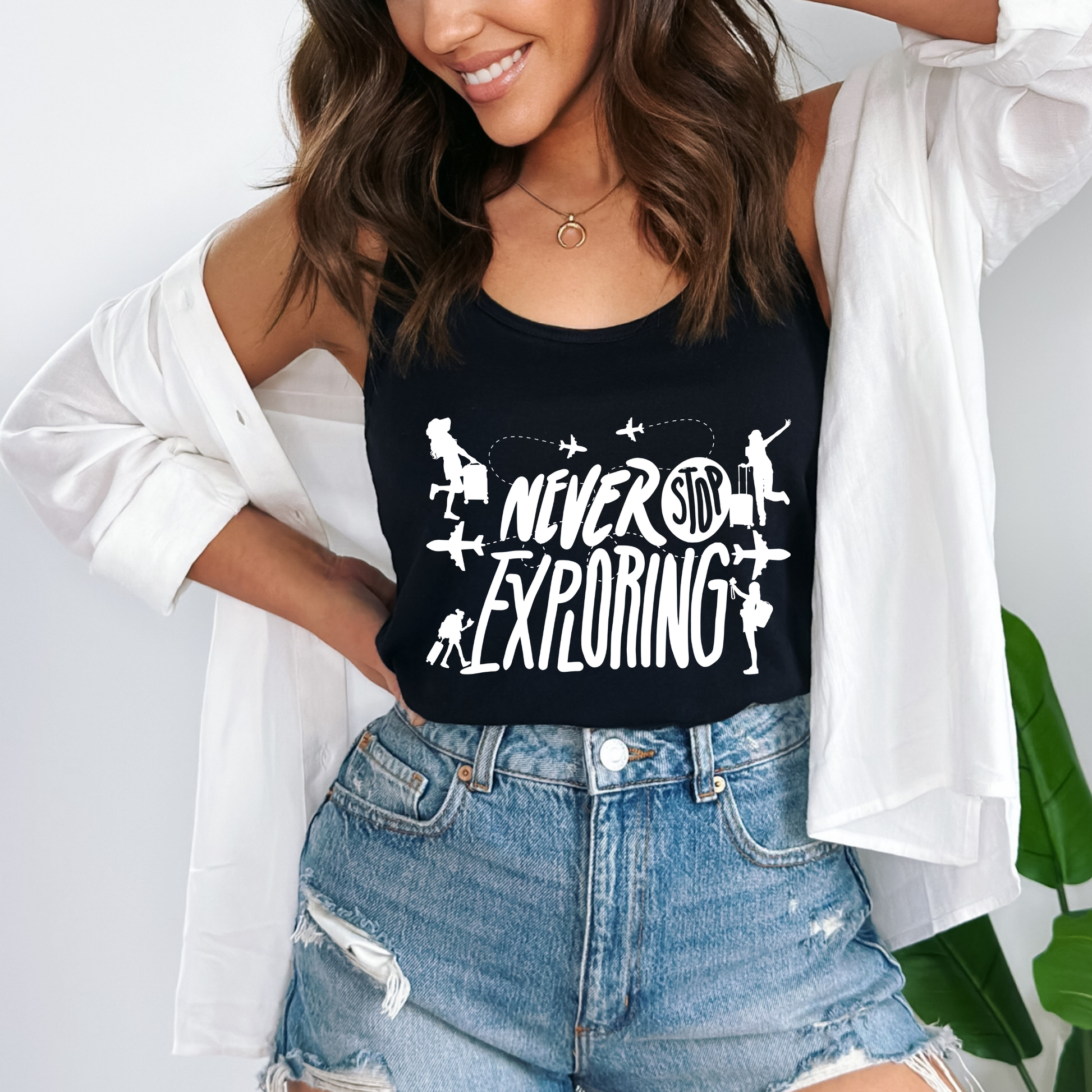 πβοΈ This racerback tank with the design 'Never Stop Exploring' exudes a sense of adventure and wanderlust.