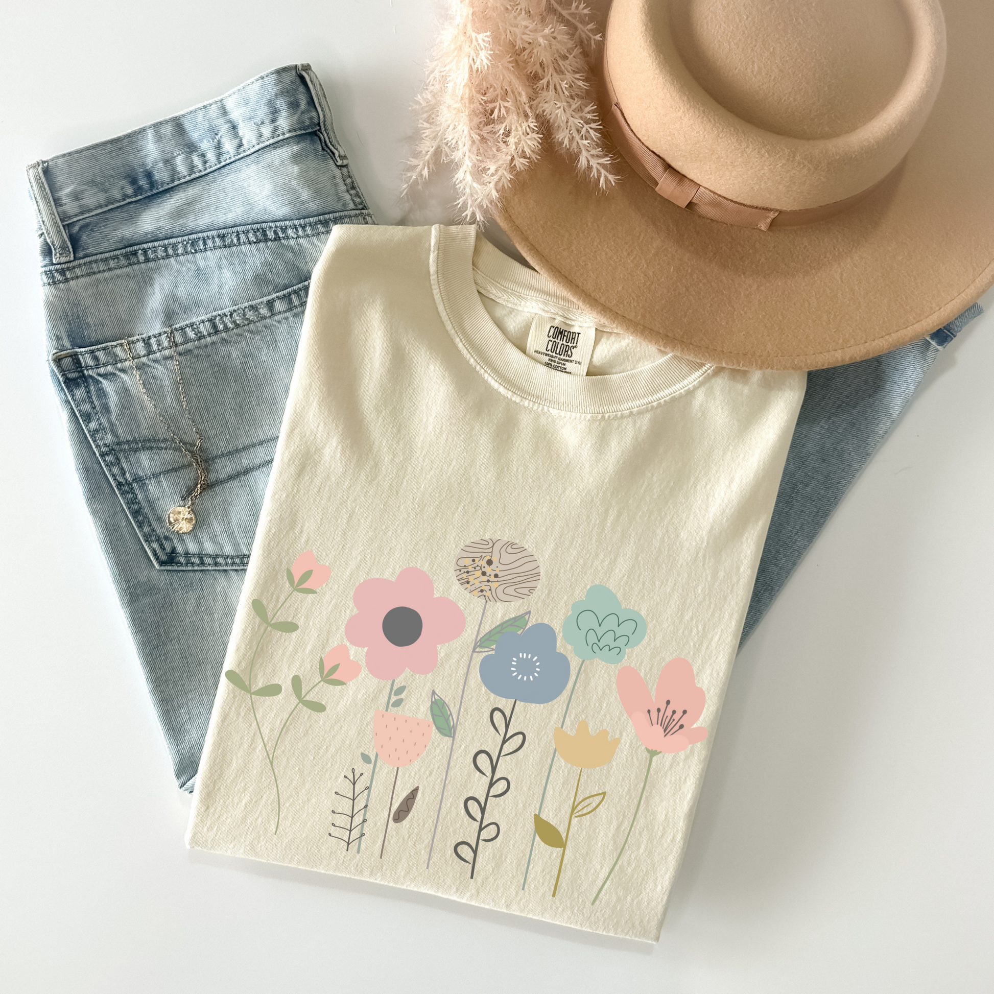 ๐ผ๐ This pastel wildflower t-shirt gives off a serene and whimsical vibe, perfect for nature lovers and those who enjoy a soft, feminine aesthetic.