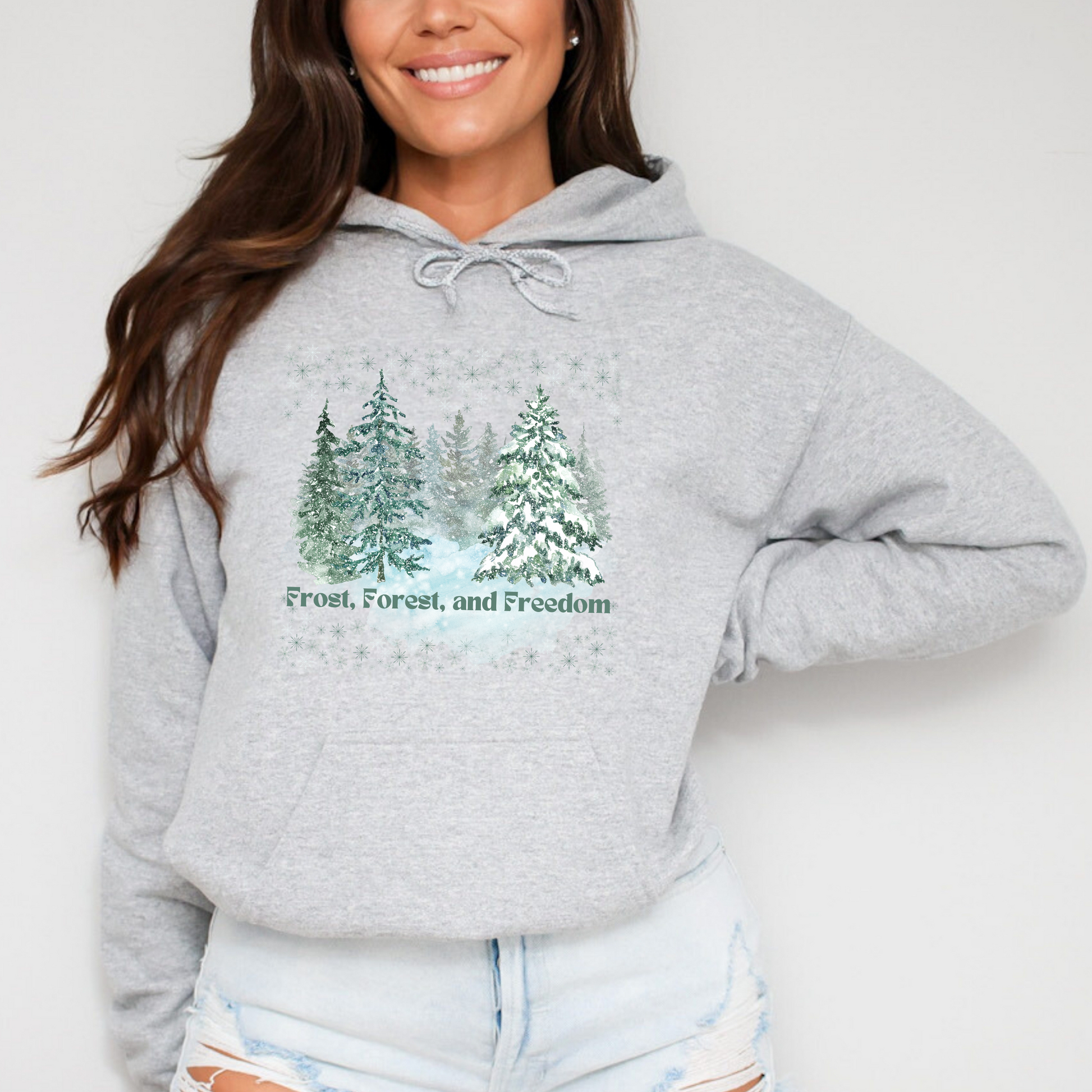 ๐โ๏ธ Embrace the spirit of the outdoors with our 'Frost, Forest, and Freedom' Winter Hoodie.