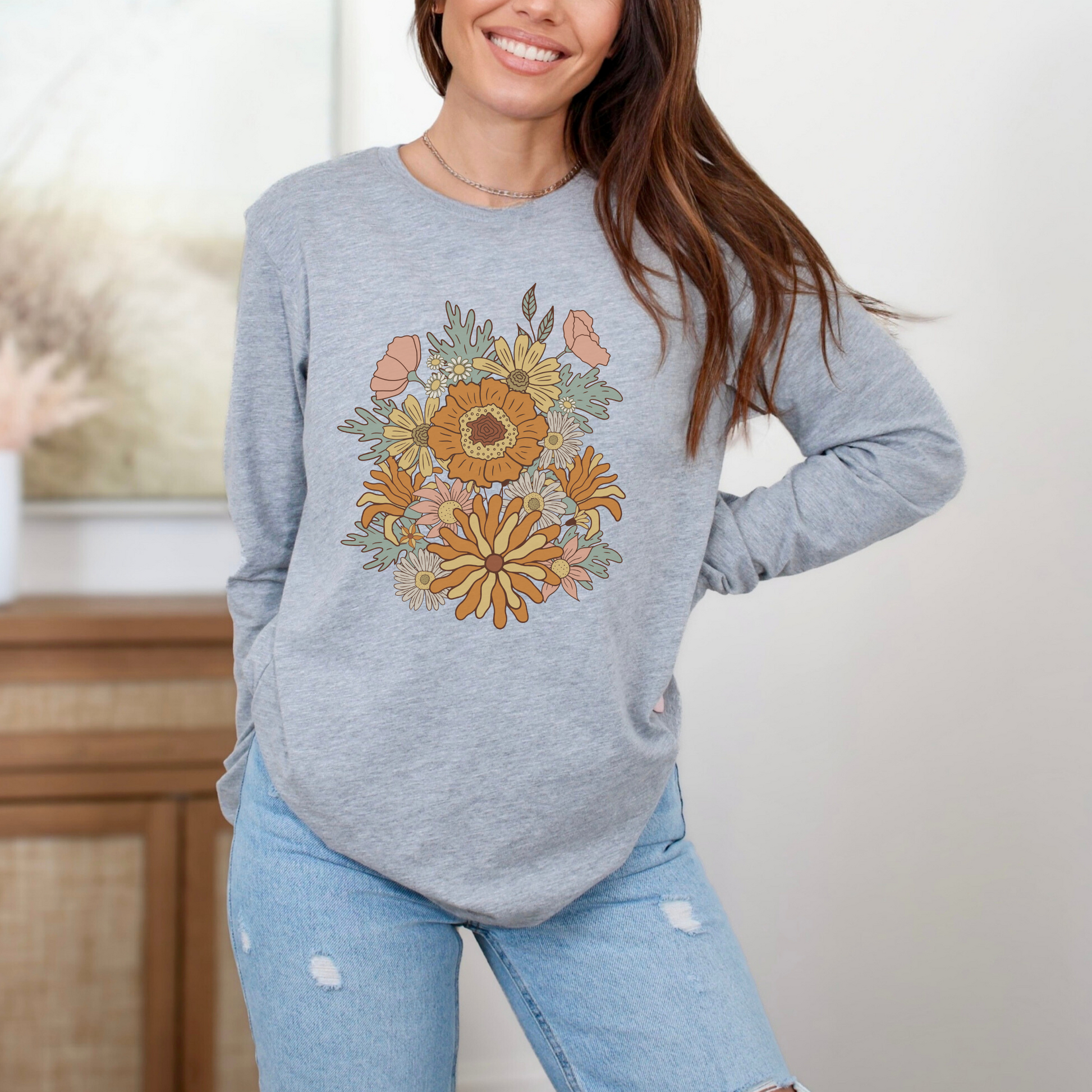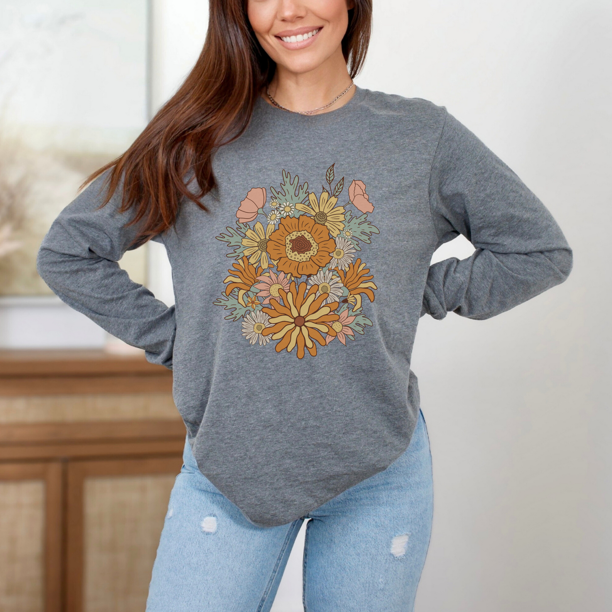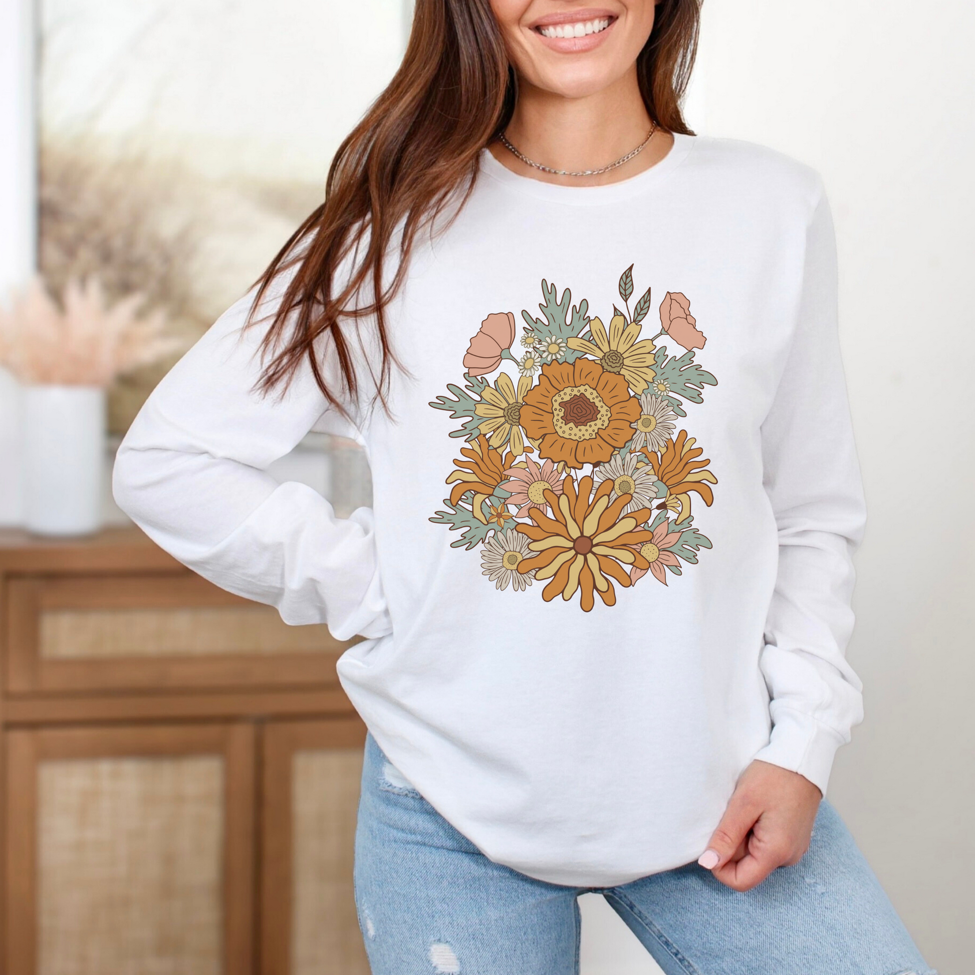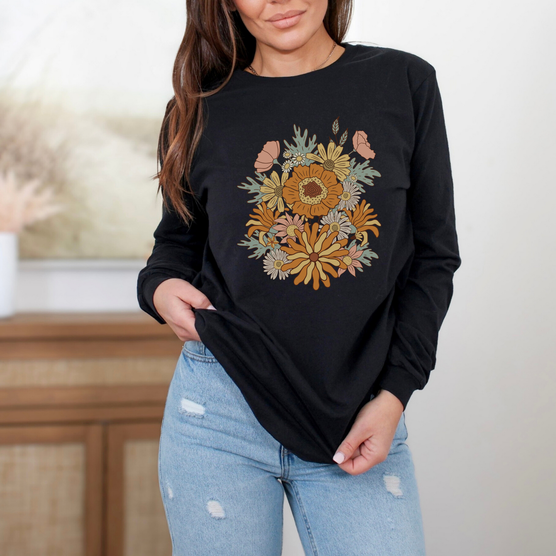 ๐๐ธย Add some groovy charm to your wardrobe with this Retro Flowers Long Sleeve Shirt!