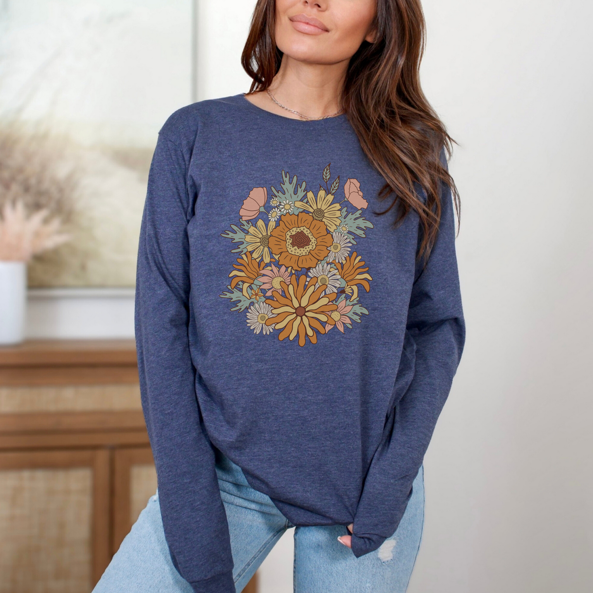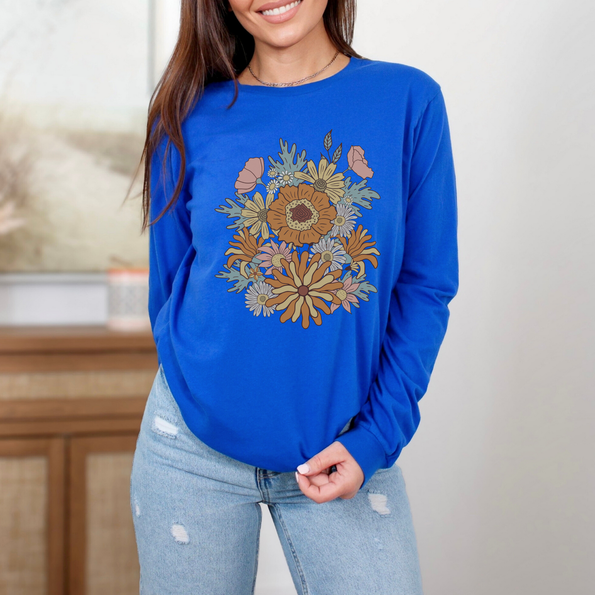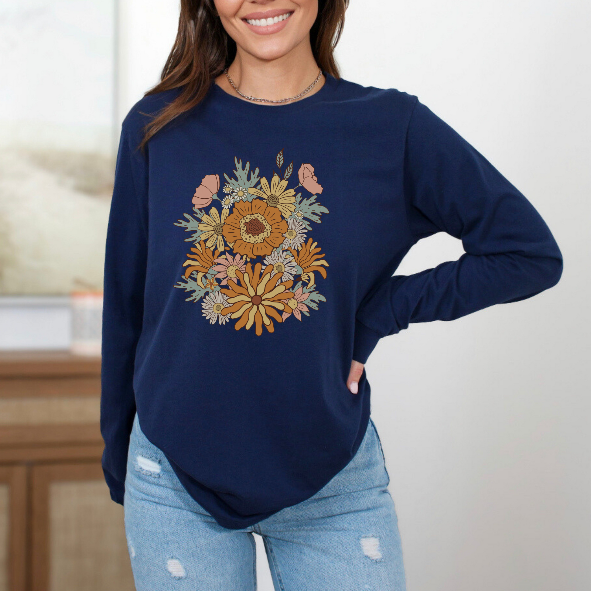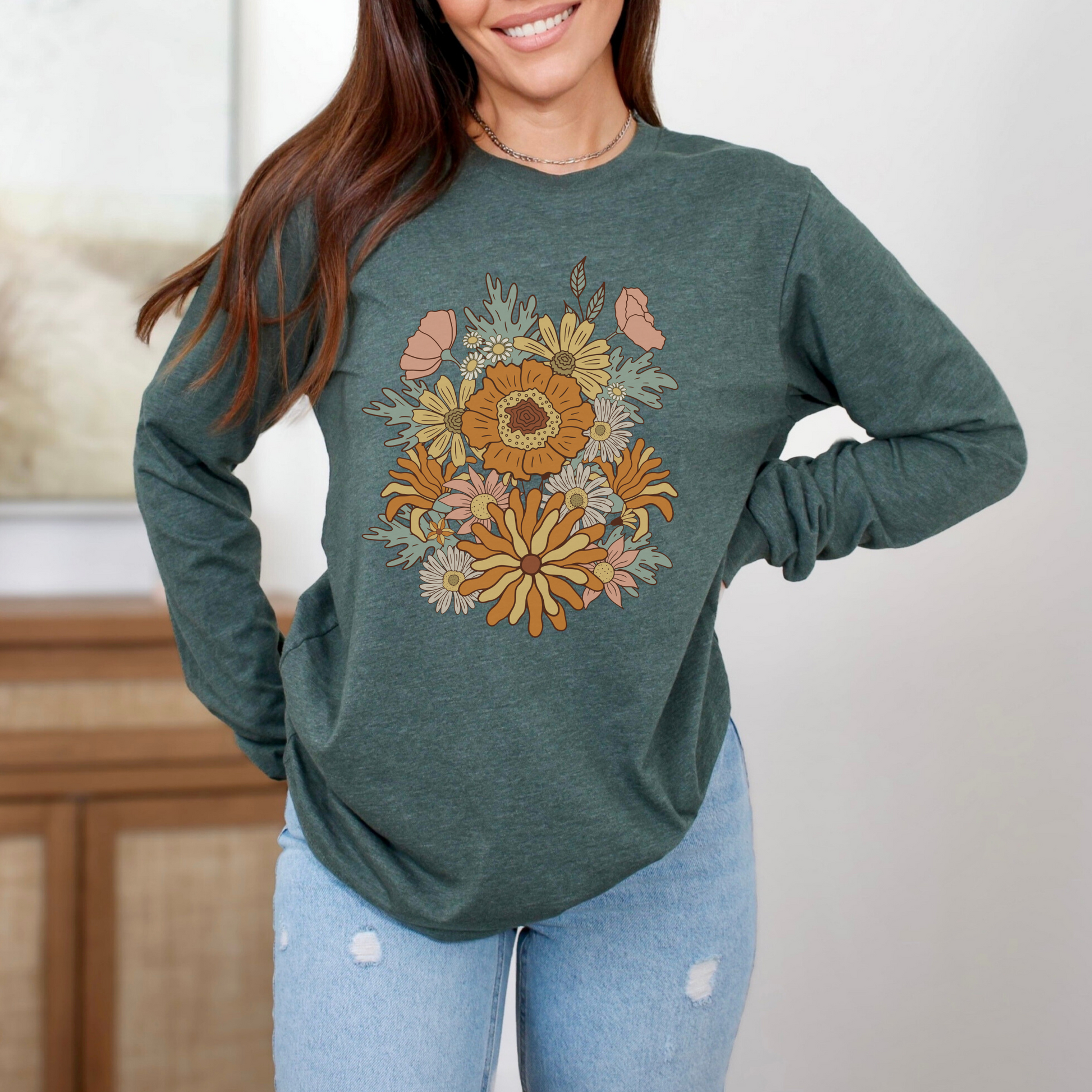 ๐๐ธย Add some groovy charm to your wardrobe with this Retro Flowers Long Sleeve Shirt!