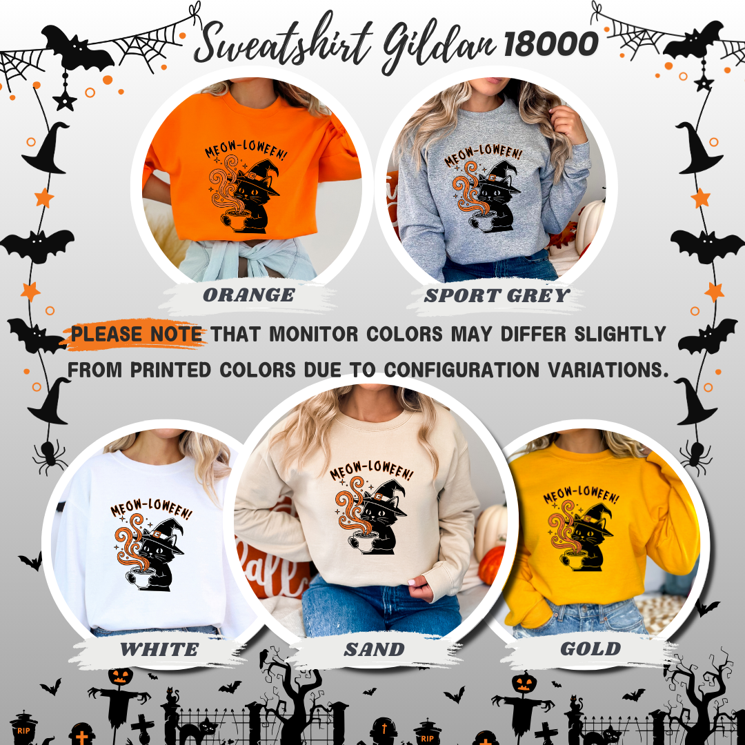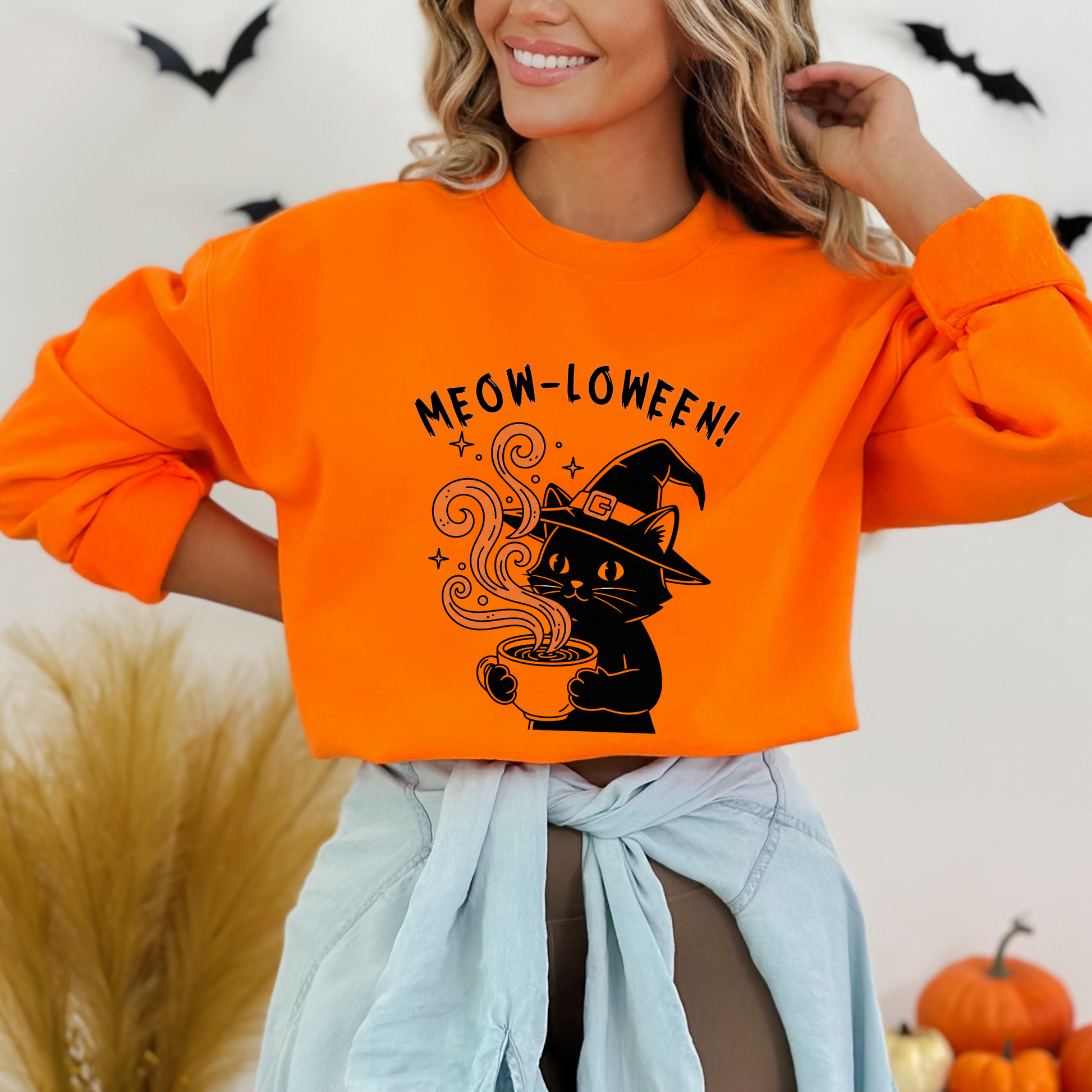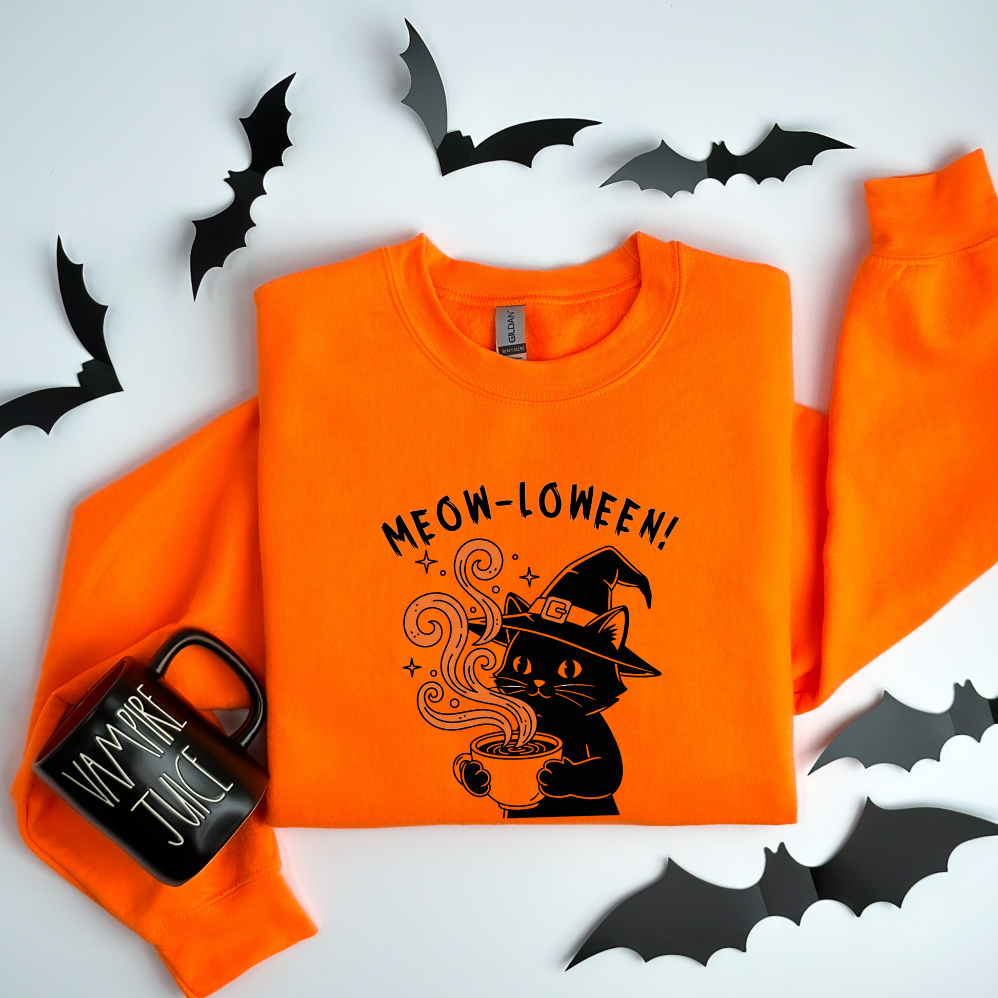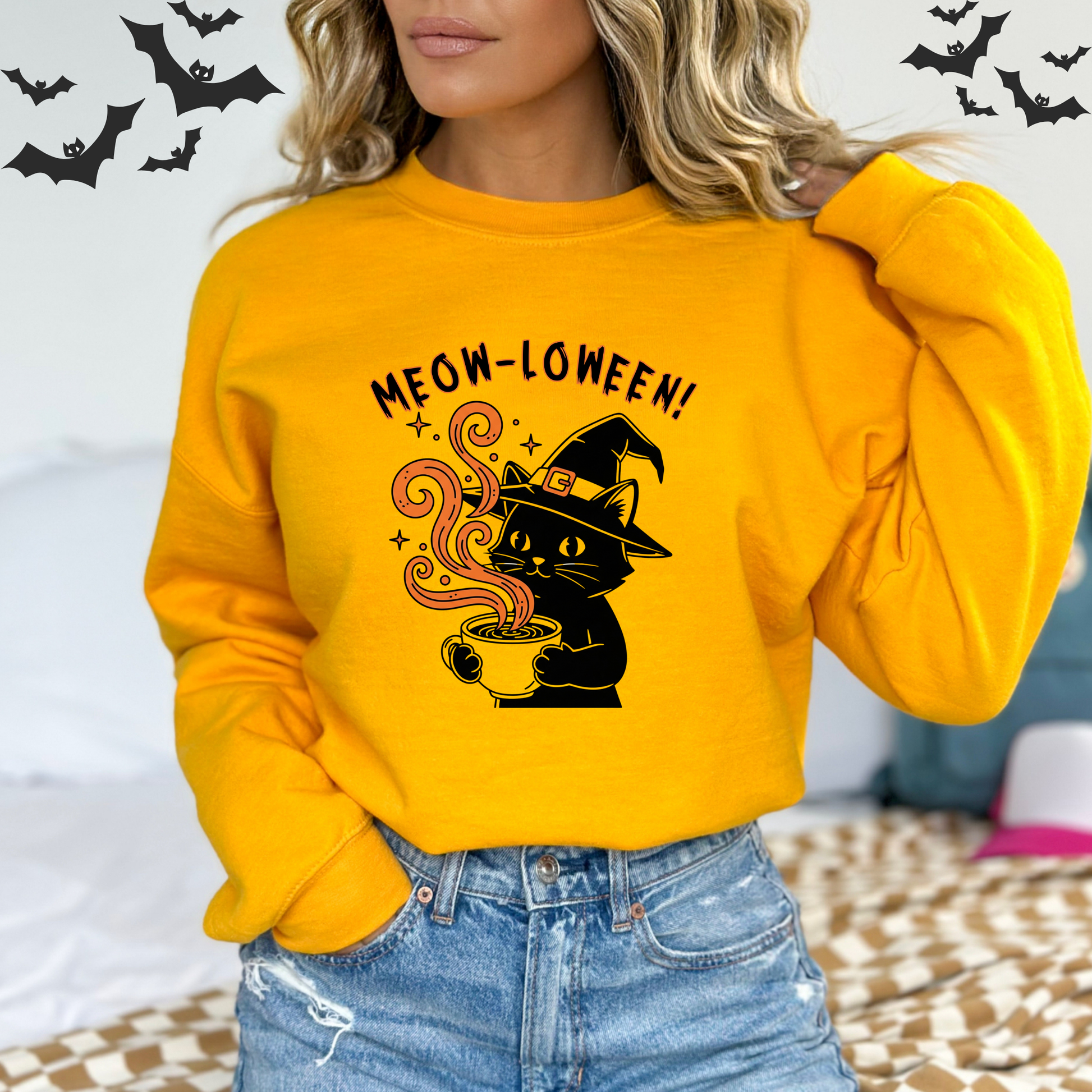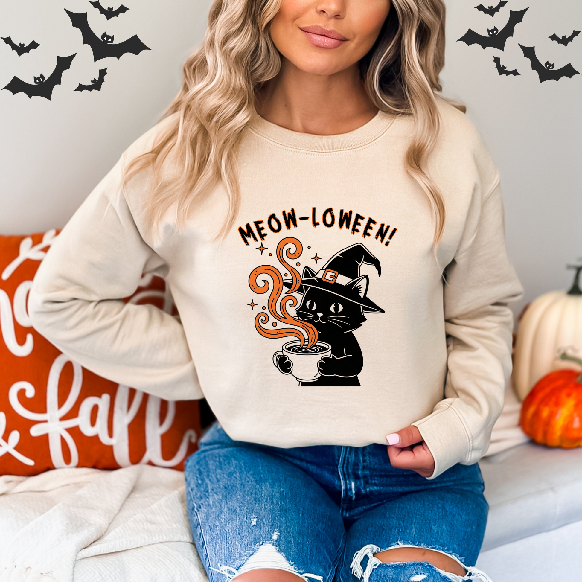 Meow-Loween Witchy Black Cat Coffee Brew Sweatshirt
