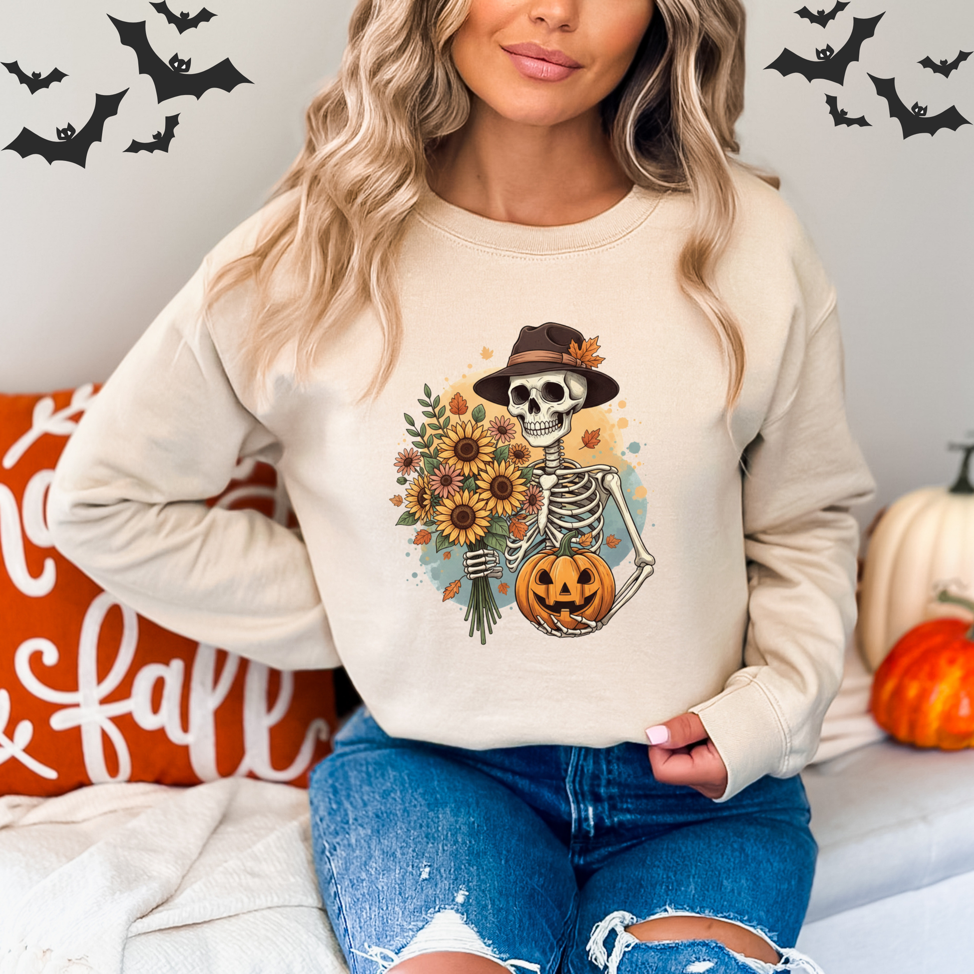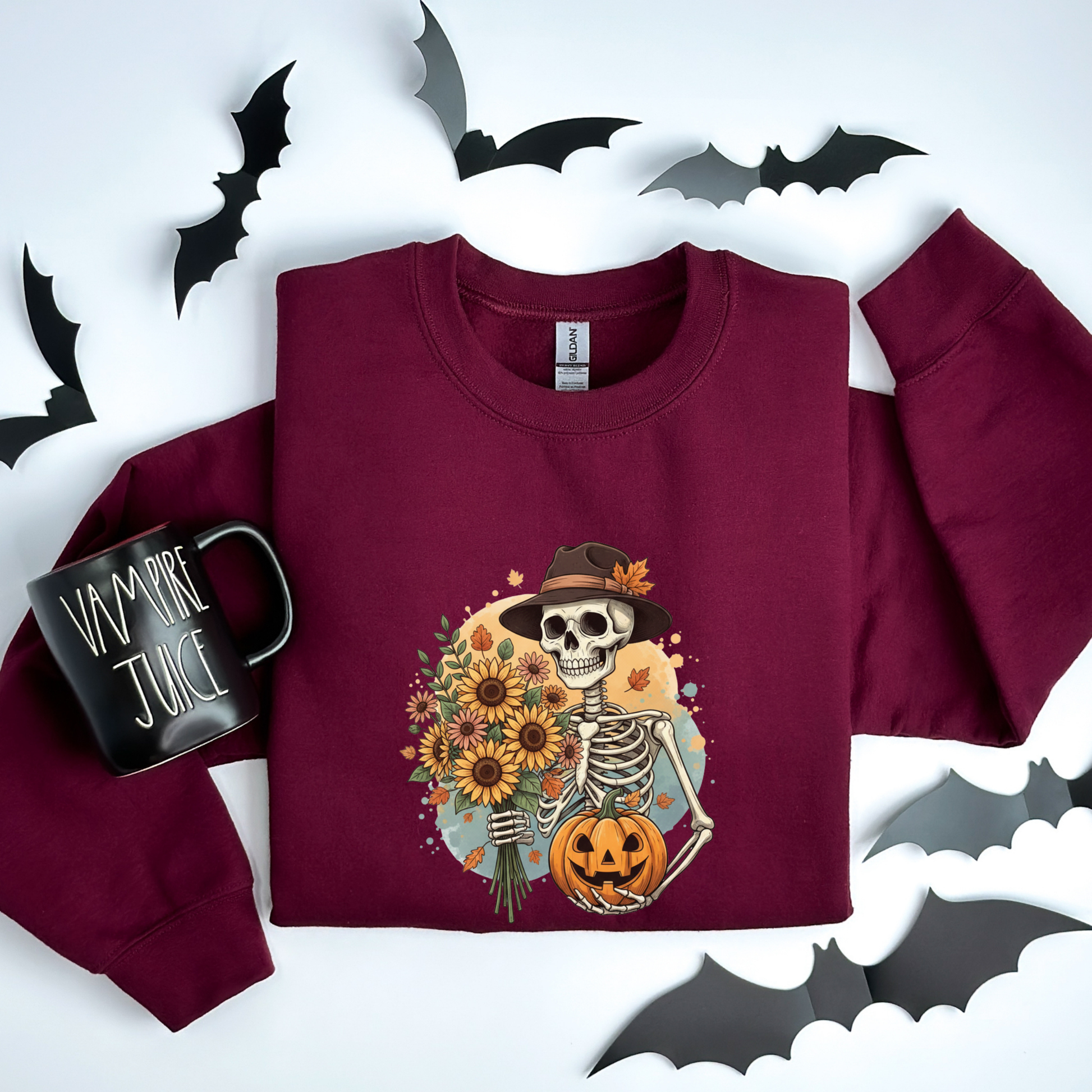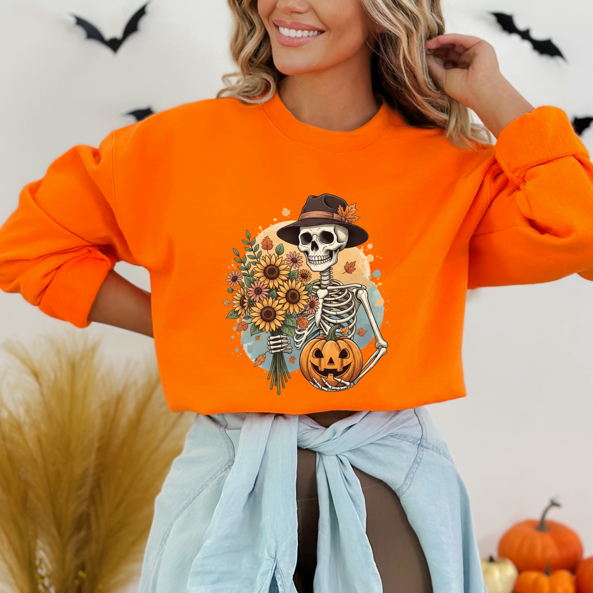 Whimsical Vintage Skeleton & Pumpkin Sweatshirt