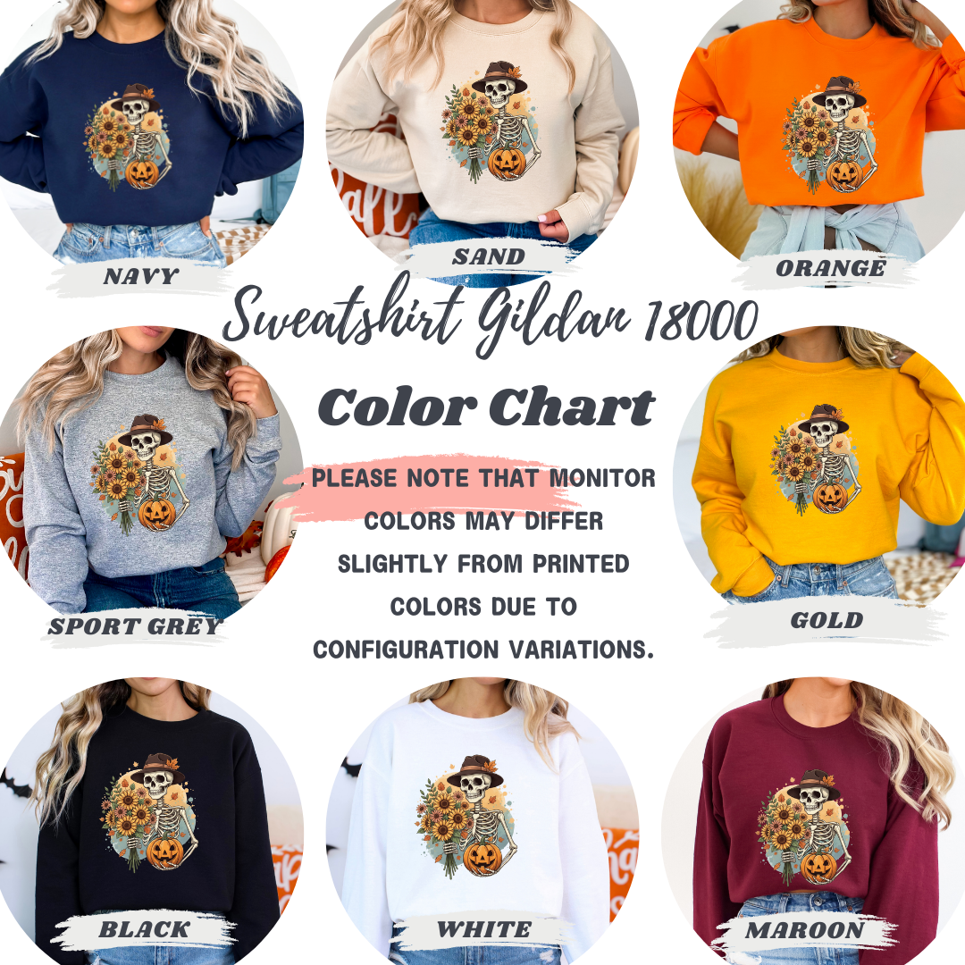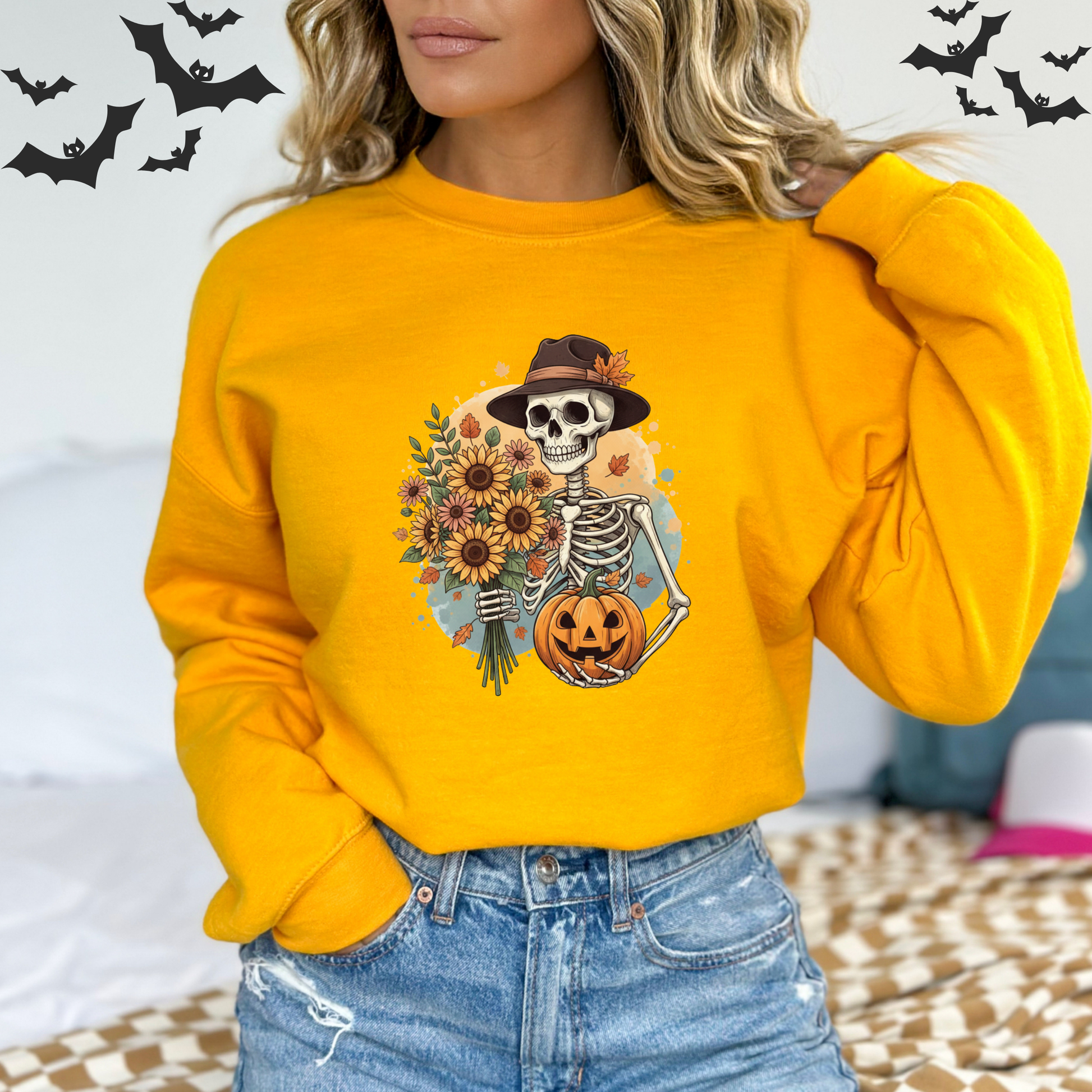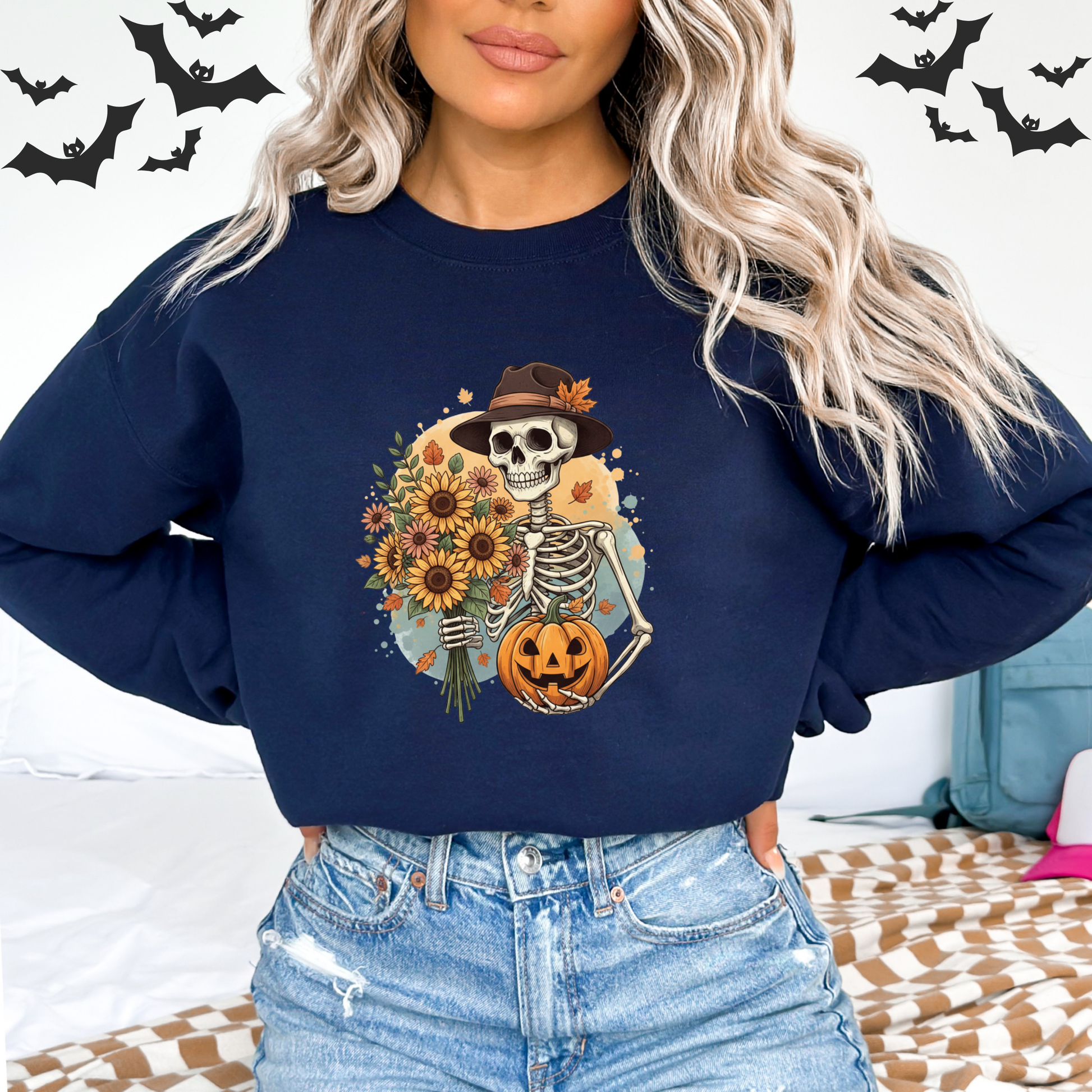 Whimsical Vintage Skeleton & Pumpkin Sweatshirt