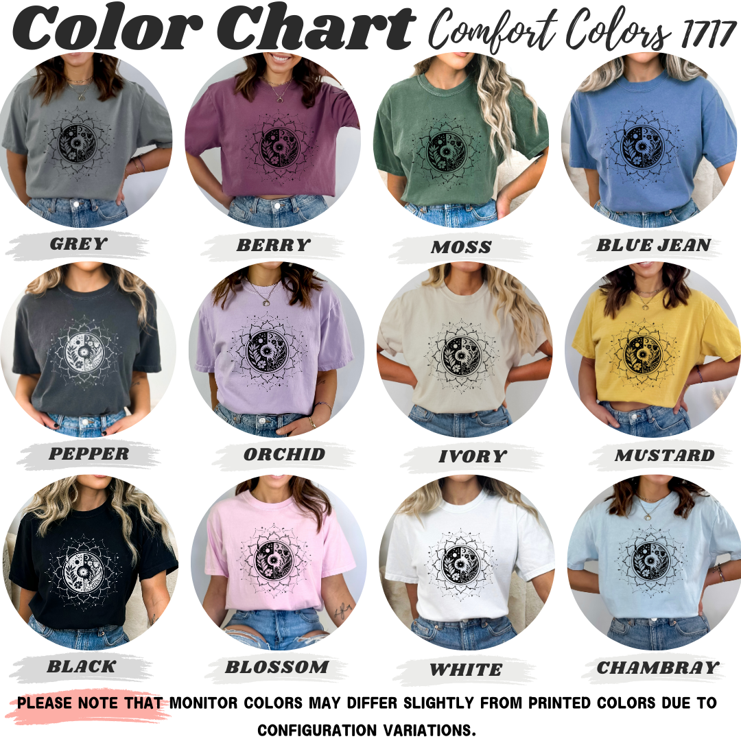 This garment is a standard unisex size Comfort Colors Tee.